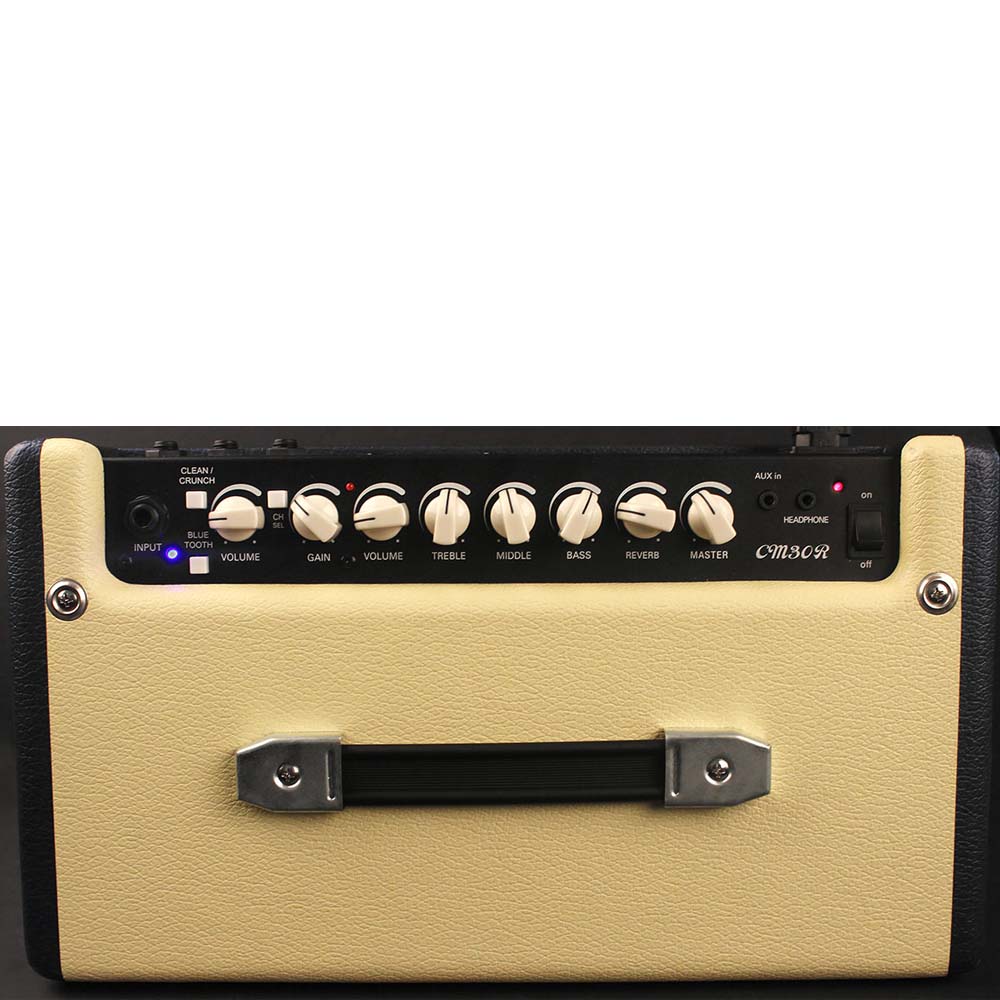 Управление эквалайзером, громкостью и эффектами осуществляются с помощью регуляторов на верхней панели. CM30R BK предлагает широкий спектр звука, начиная от чистого, заканчивая современным перегрузом. Каждый канал имеет независимый регуляторами усиления и громкости, а также 3-полосный эквалайзер для настройки высоких, средних и низких частот, благодаря которому можно легко настроить звук электрогитары на предпочитаемый жанр. Регулятор усиления обеспечивает широкий диапазон перегруза от теплого блюзового кранча до современного дисторшна. Кнопочный переключатель каналов позволяет легко переключаться с чистого канала на канал овердрайва и обратно, что делает CM30R очень универсальным усилителем в своем классе.