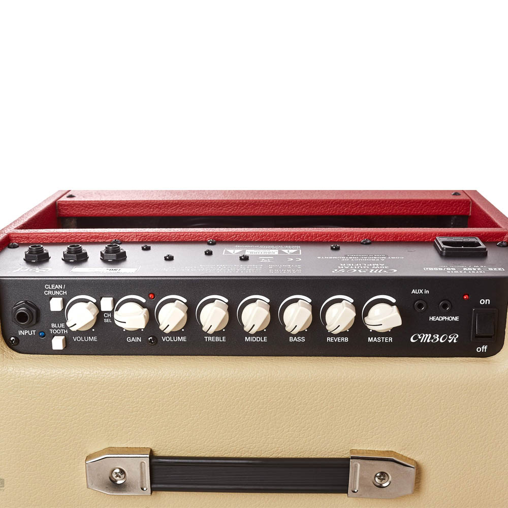 Управление эквалайзером, громкостью и эффектами осуществляются с помощью регуляторов на верхней панели. CM30R DR предлагает широкий спектр звука, начиная от чистого, заканчивая современным перегрузом. Каждый канал имеет независимый регуляторами усиления и громкости, а также 3-полосный эквалайзер для настройки высоких, средних и низких частот, благодаря которому можно легко настроить звук электрогитары на предпочитаемый жанр.