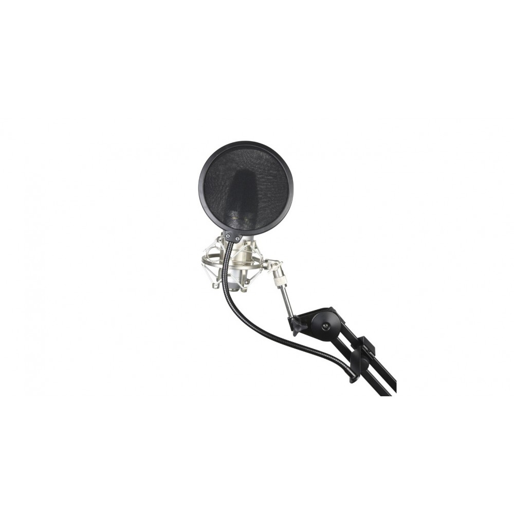 Экран диаметром 130 мм располагается на гибком держатели типа «гусиная шея» длиной 270 мм. Поп-фильтр может быть установлен на любую микрофонную стойку, диаметр трубы которой не превышает 23 мм. Тип. Держателя – струбцина.