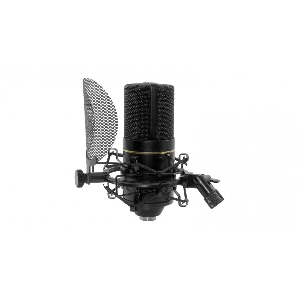 MXL 770 Complete — конденсаторный микрофон с кардиоидной диаграммой, аттенюатором -10 дБ, ВЧ-фильтром 150 Гц, предусилителем с балансным выходом и подвесом пук со встроенным поп-фильтром.