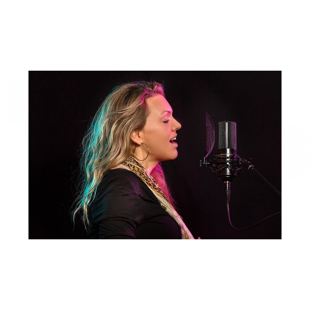 MXL 770X — конденсаторный микрофон с 3 переключающимися диаграммами направленности (кардиоидная, 2-направленная и всенаправленная) и большой 1,26-дюмовой диафрагмой с золотым напылением, аттенюатором -10 дб и ВЧ-фильтром 135 Гц.