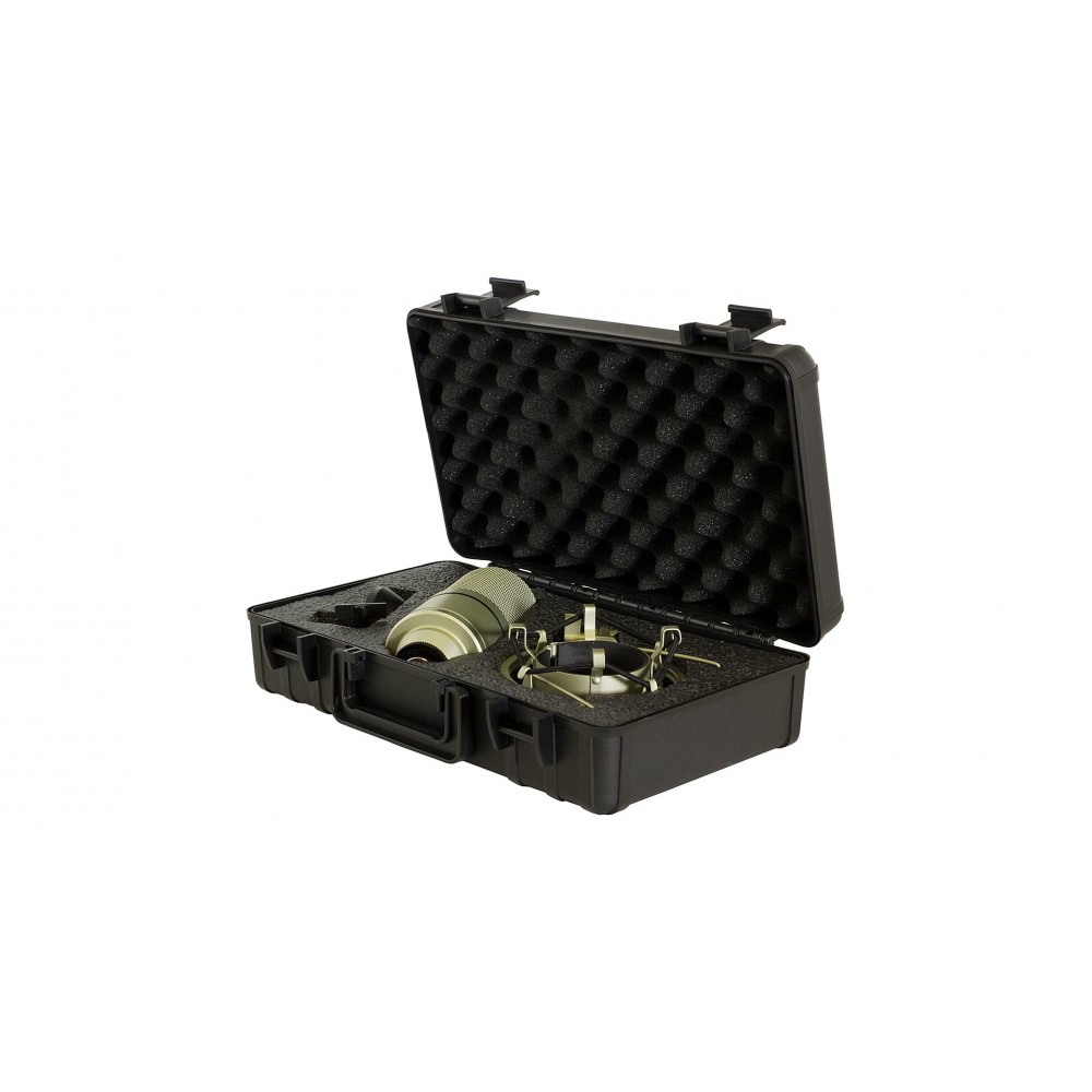 В комплекте с микрофоном поставляется подвес паук, держатель для микрофонной стойки и пластиковый кейс.