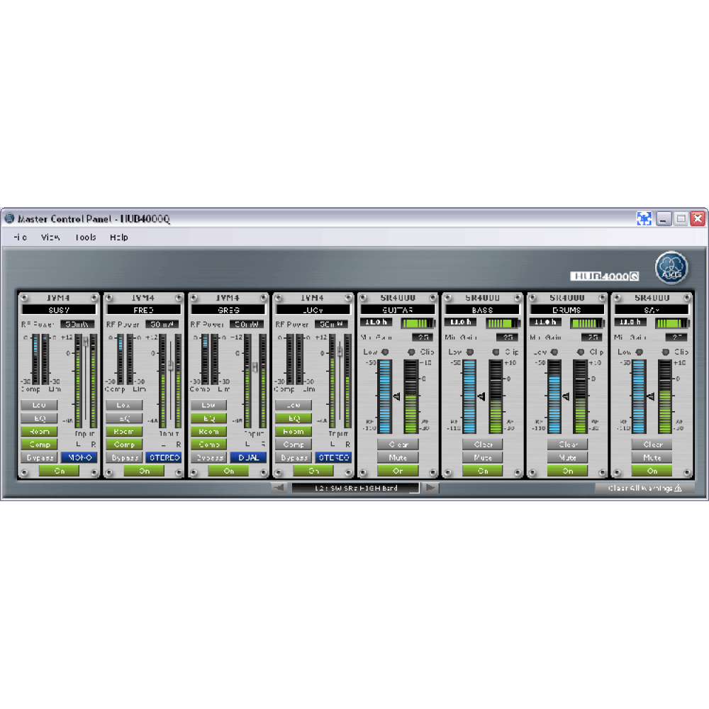 Программа управления System Architect™, установленная на компьютере, автоматически идетифицирует все концентраторы AKG HUB4000Q , подключенные к компьютеру. Разработанный компанией AKG, канально-ориентированный пользовательский интерфейс в System Architect™ обеспечивает интуитивное управление и делает настройку системы детской забавой, при помощи Environment Scan, Auto Setup Wizard и многих других функций.
