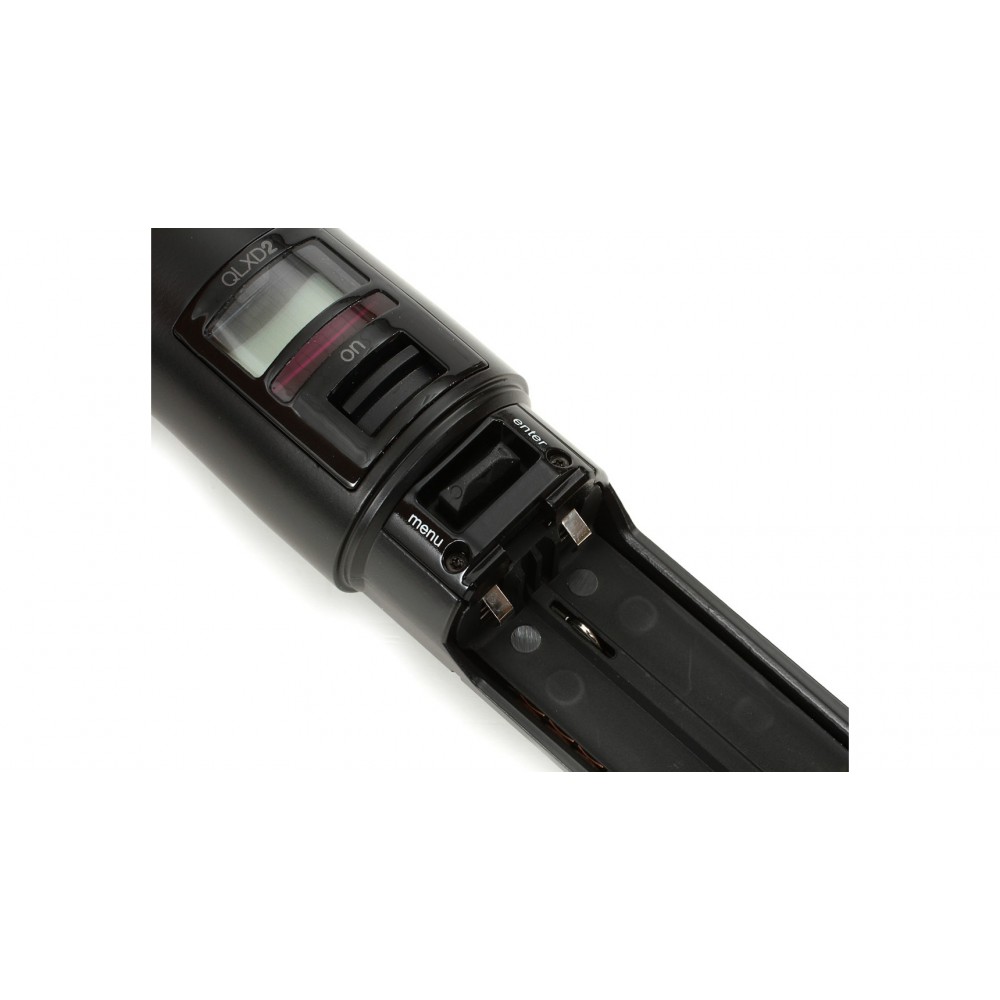 Shure QLXD2/B87A G51 – ручной передатчик для радиосистем со сменным микрофонным капсюлем Beta 87A, работающий в диапазоне 470 – 534 мГц.