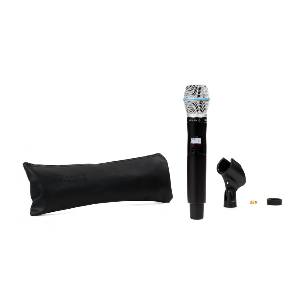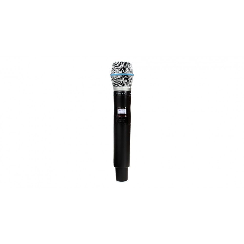 Капсюль Beta 87A сочетает конденсаторную схему и суперкардиодную диаграмму направленности для получения студийного качества звучания и максимальной изоляции. Тем не менее, на универсальный передатчик Shure QLXD2 можно установить и другой капсюль (SM86, Beta 58A, или SM58).