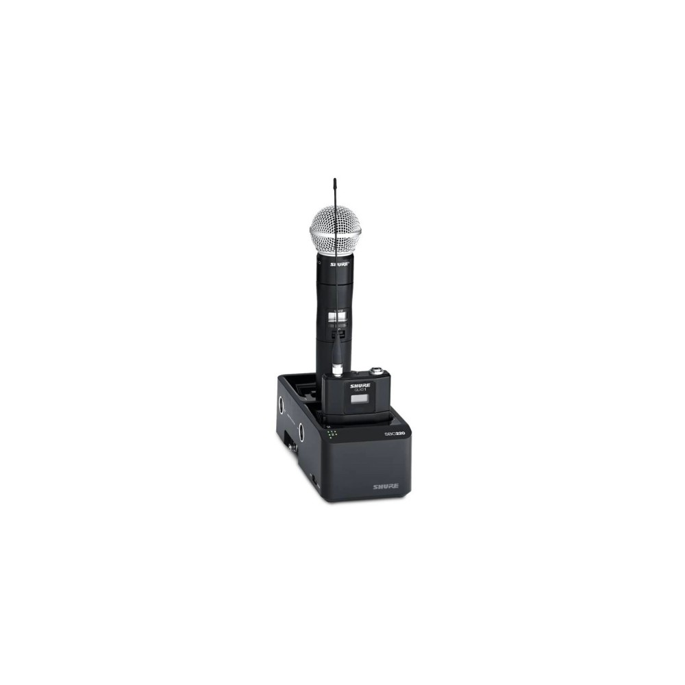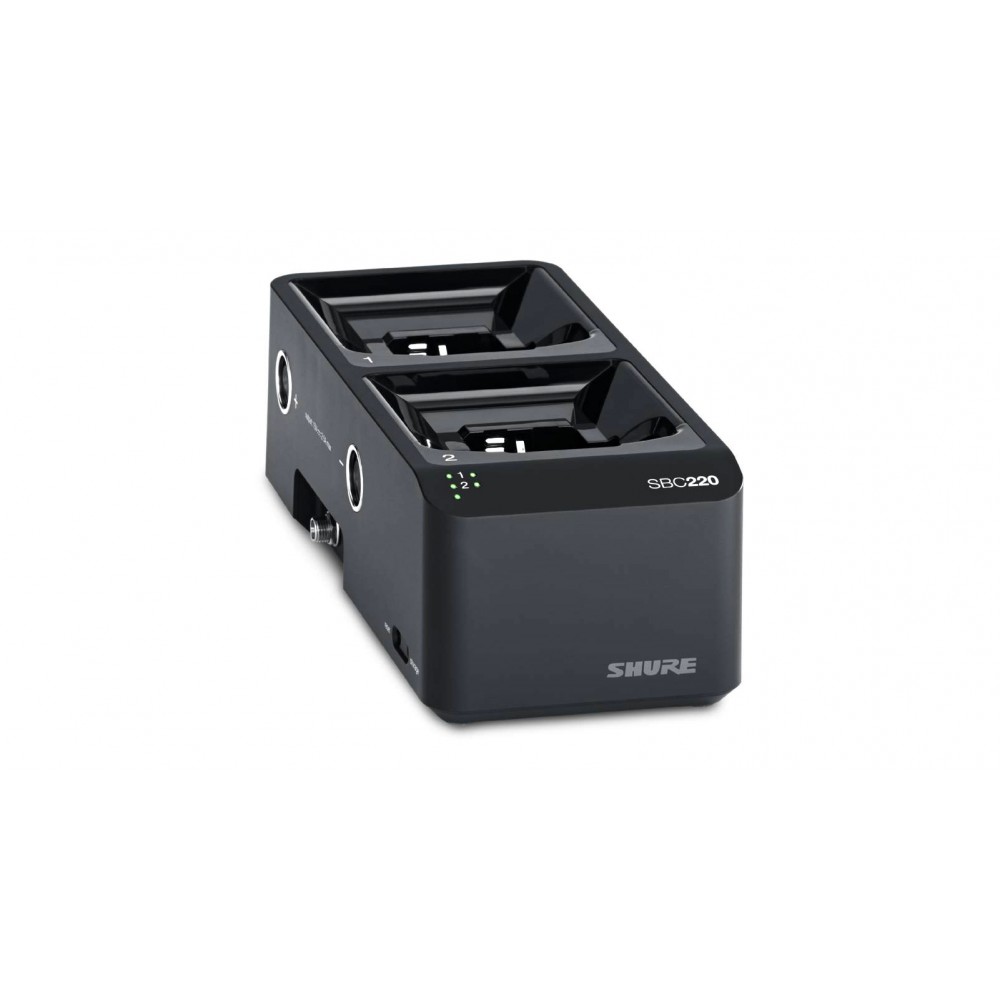 Сетевая зарядная док-станция для зарядки, хранения и мониторинга 2 аккумуляторов SB900A, бодипаков QLXD1, ULXD1, AD1, P3RA, P9RA и P10R или ручных передатчиков QLXD2, ULXD2 и AD2. При подключении к сети можно просматривать статус каждого аккумулятора через программу Wireless Workbench. Каскадируется до 4х устройств SBC220 для работы от одного источника питания.