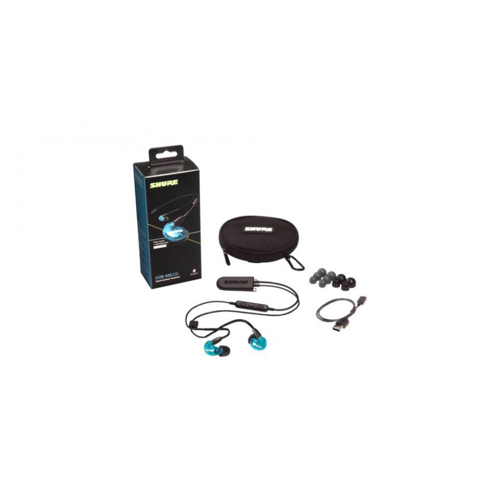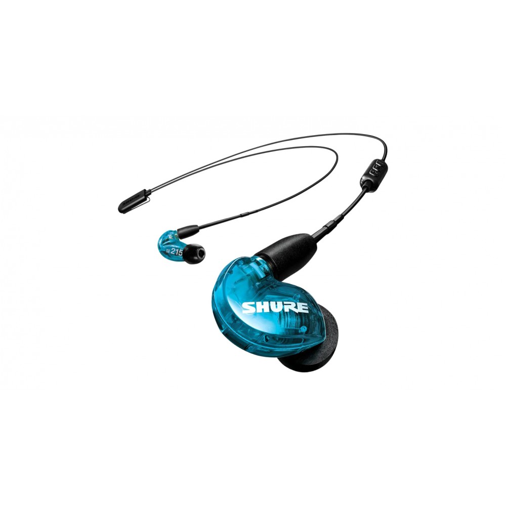 Shure SE215SPE-B+BT2-EFS — беспроводные вставные наушники с 1 динамическим микродрайвером, микрофоном и прозрачным корпусом синего цвета.
