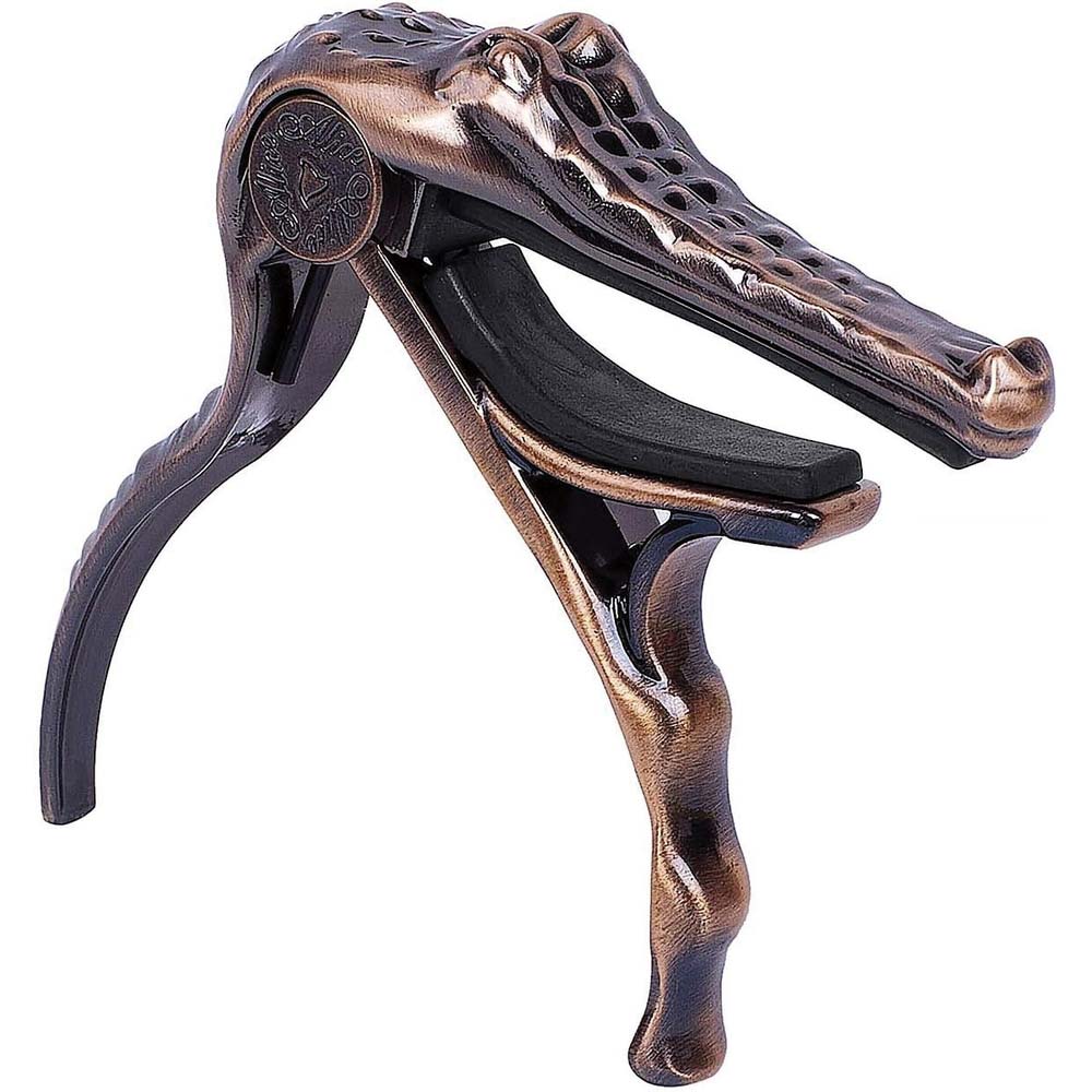 A007G/PB от Alice имеет уникальную форму крокодила и изготовлен из алюминиевого сплава. Высококачественная стальная пружина рассчитана для постоянного давления, благодаря чему каподастр надежно держится на грифе гитары и удобно перемещается или снимается с грифа, обеспечивая достаточное давление на струны, без пережимов, недожимов, и, соответственно, сохраняет стабильный строй. Изготовлен из легкого алюминиевого сплава. Каподастры отлично подходят, если вы хотите научиться играть свои любимые песни на гитаре, но необходимо высокое звучание инструмента под голос.