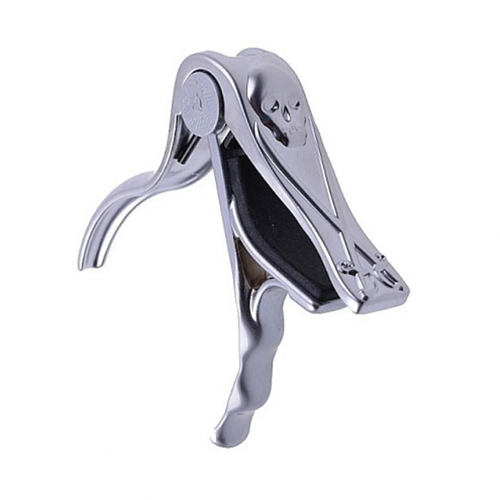 Каподастр A007H/CP от Alice представляет собой устройство для зажатия струн на акустической и электрогитаре. Alice A007H/CP имеет уникальную форму с черепами. Пружинное поджатие обеспечивает надежное крепление каподастра на грифе гитары, без пережимов и недожимов, благодаря чему инструмент будет держать строй.