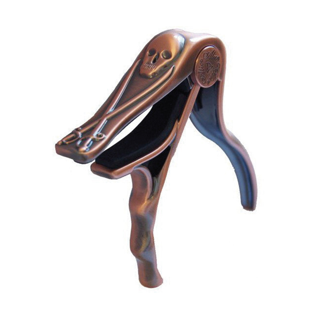 Каподастр A007H/PB от Alice представляет собой устройство для зажатия струн на акустической и электрогитаре. Alice A007H/PB имеет уникальную форму с черепами. Пружинное поджатие обеспечивает надежное крепление каподастра на грифе гитары, без пережимов и недожимов, благодаря чему инструмент будет держать строй.