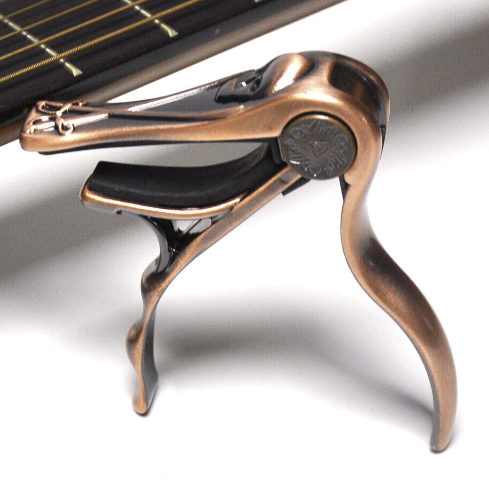 С каподастром и несколькими основными аккордами вы можете играть практически в любой тональности. Каподастр укорачивает длину всех струн одновременно, заменяя, по сути, собой верхний порожек. Все «открытые» струны с ним звучат выше, чем без каподастра. Изготовлен из легкого алюминиевого сплава.