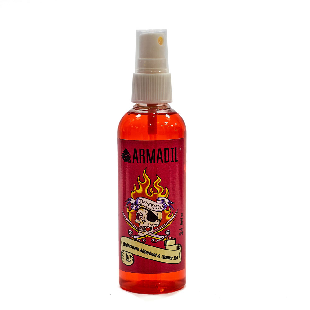 Fingerboard Absorbent & Cleaner 100 от Armadil представляет собой спрей-очиститель грифа гитары, может использоваться в качестве первого шага при обработке и уходу за грифом. Подходит для большинства пород дерева, не рекомендуется для использования на кленовые накладки, так как они зачастую обладают лакированным покрытием, для которого вредны любые очистители. Абсорбирующие свойства данного клинера не только очищают поверхность грифа инструмента от пота, жировых выделений и въевшихся загрязнений, но и извлекают излишнюю влагу из пор древесины, которая могла остаться, например, при предыдущей очистке и обработке.