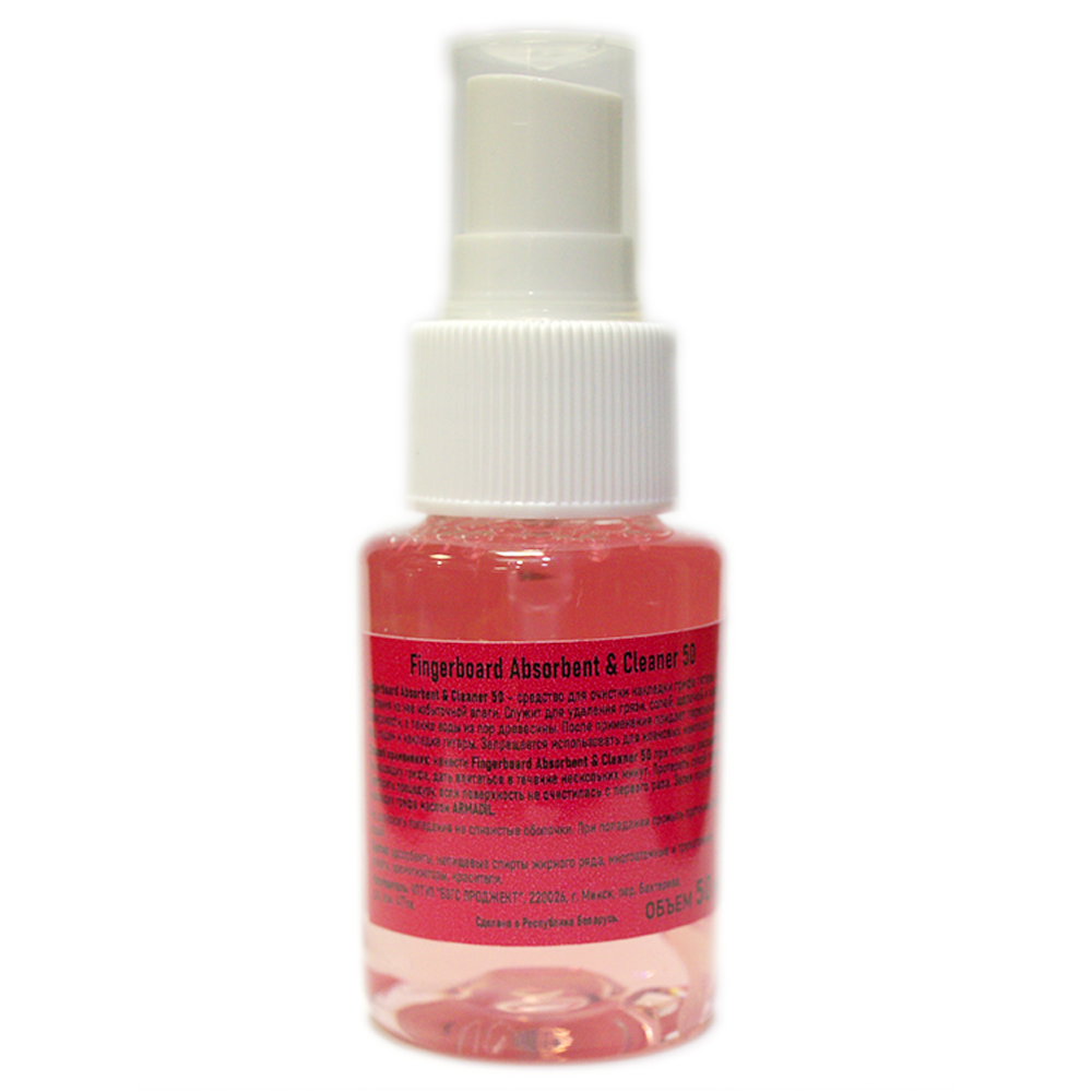 Fingerboard Absorbent & Cleaner 50 от Armadil представляет собой спрей-очиститель грифа гитары, может использоваться в качестве первого шага при обработке и уходу за грифом. Подходит для большинства пород дерева, не рекомендуется для использования на кленовые накладки, так как они зачастую обладают лакированным покрытием, для которого вредны любые очистители. Абсорбирующие свойства данного клинера не только очищают поверхность грифа инструмента от пота, жировых выделений и въевшихся загрязнений, но и извлекают излишнюю влагу из пор древесины, которая могла остаться, например, при предыдущей очистке и обработке.