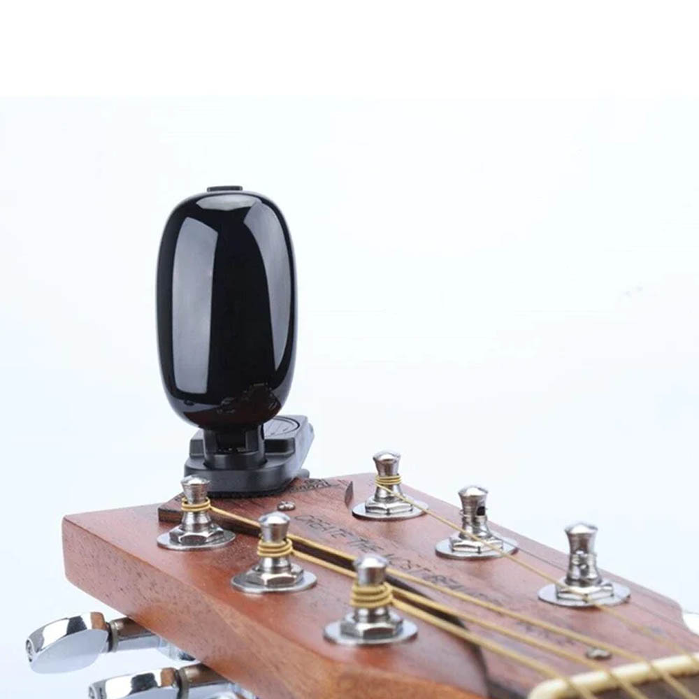 Вращение на 360 градусов. При включении тюнер имеет настройку A4 = 440 Гц, кнопка на верхней части тюнера отвечает за настройки эталонной ноты Ля. При нажатии на кнопку на экране показываются цифры, которые соответствуют настройке ноты Ля: цифры 0-5 означают настройку ноты от 440 Гц до 445 Гц соответственно, 6-9 отвечают за настройку 436 Гц - 439 Гц. В комплект входит элемент питания, инструкция по применению.