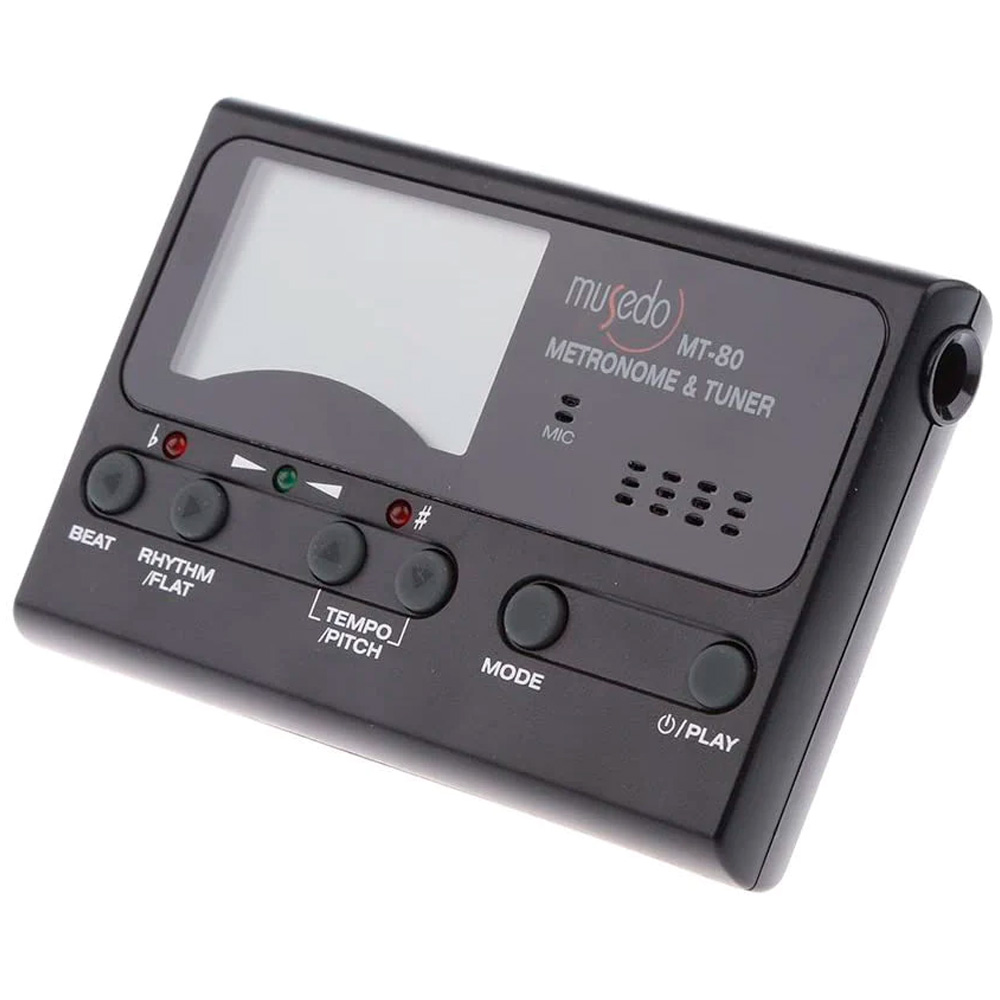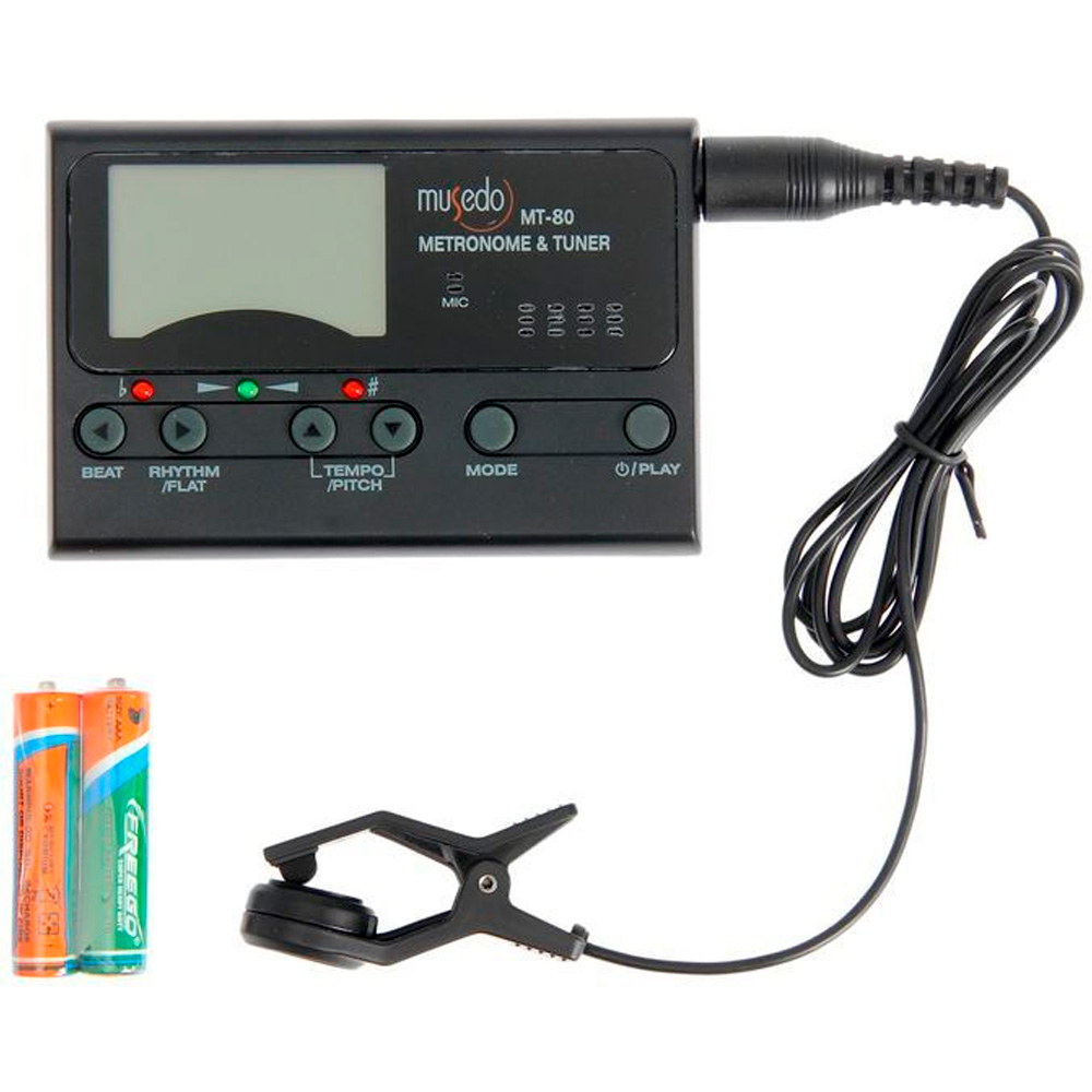 MT-80 от Musedo — это компактное устройство совмещающее в себе все необходимые инструменты для музыканта: здесь вы можете найти функцию тюнера, метронома и тон-генератора(камертона) в одном компактном корпусе. Тюнер Musedo MT-80 поддерживает множество инструментов, позволяет настроить гитары, бас-гитары и практически любой другой инструмент. Настройка может производиться через встроенный микрофон или с помощью разъема подключения Jack 6,3 мм, для настройки электрогитар, басов, электроакустических гитар.