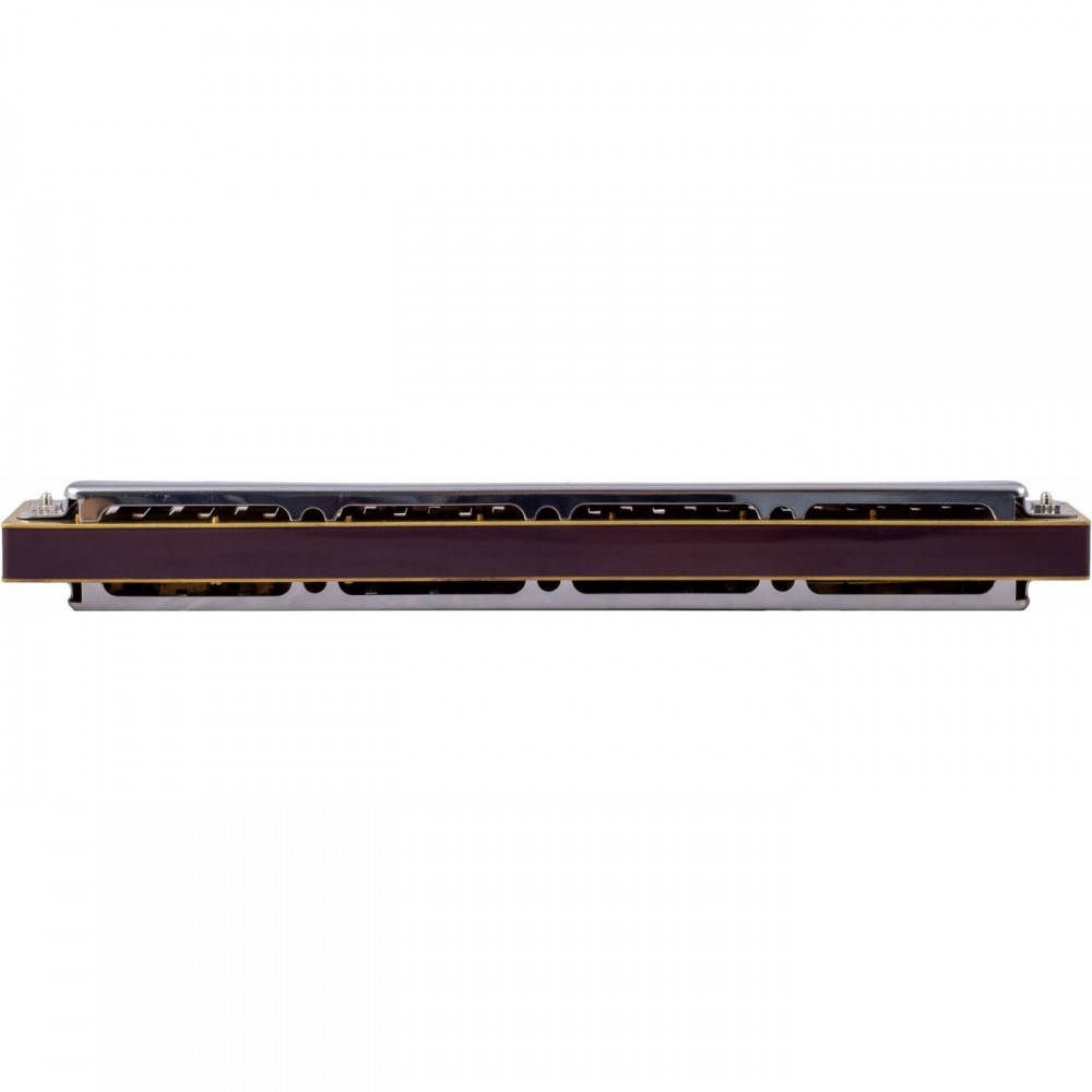 Корпус изготовлен из прочного пластика, крышки выполнены из нержавеющей стали, а медные язычки обеспечивают чистое и насыщенное звучание. Гармошка поставляется в картонной коробке, что удобно для хранения и транспортировки.