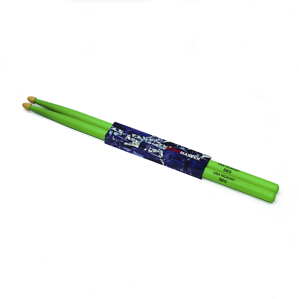 Оформить заказDrummaster 5BG, USA Hickory – барабанные палочки из американского ореха (Hickory) толщиной 5B, флуоресцентного зеленого цвета.