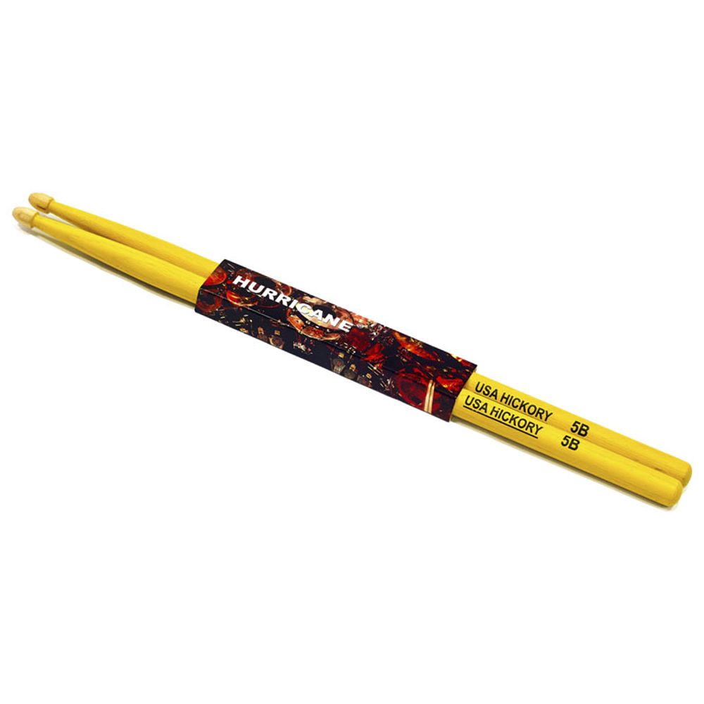 Оформить заказHurricane 5BY – барабанные палочки из американского ореха (Hickory) толщиной 5B, с покрытием желтого цвета, деревянными наконечниками каплевидной формы.