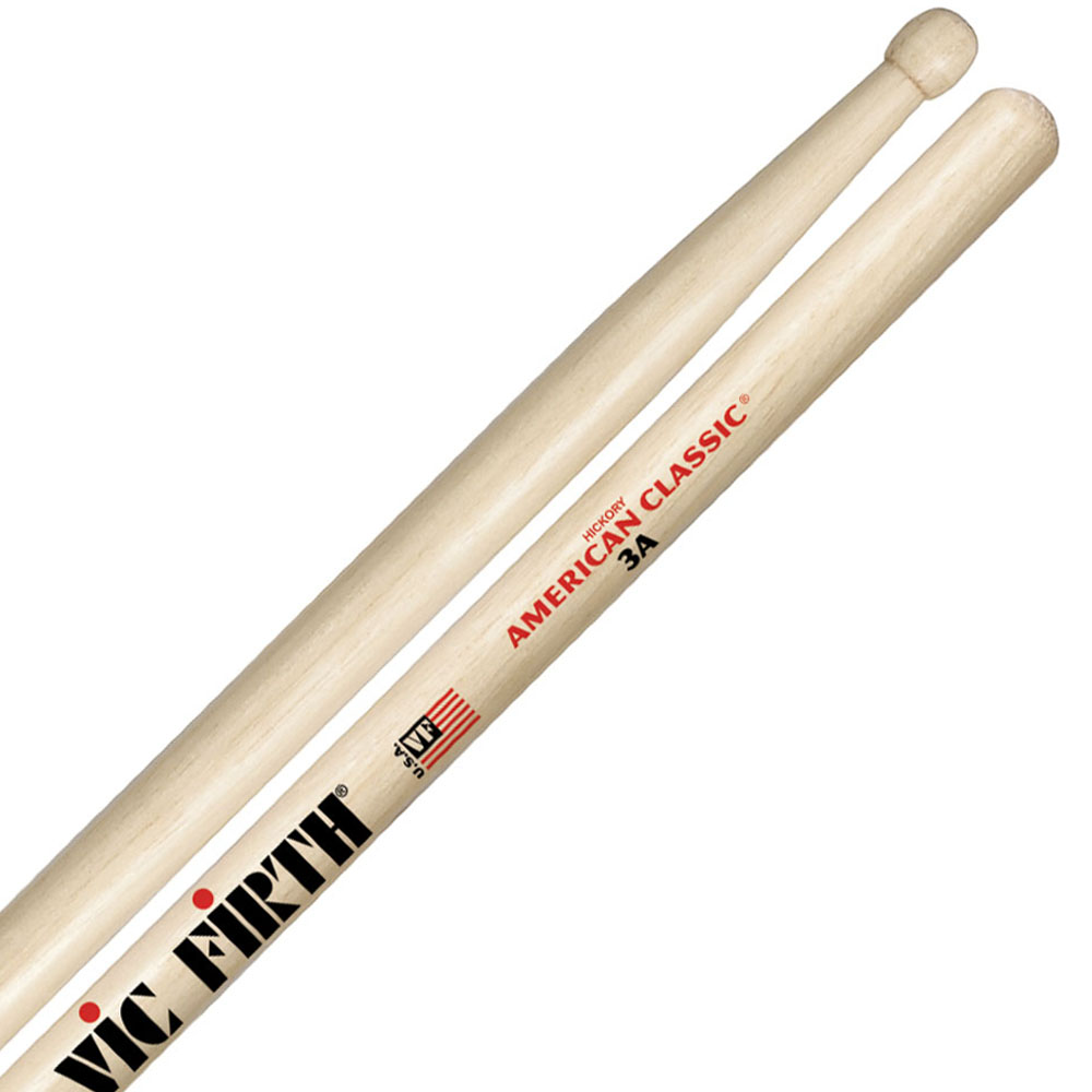 American Classic 3A от Vic Firth имеют нейлоновый наконечник бочкообразной формы, который издает яркие, отчетливые звуки тарелок. Отлично подходит для легкого рока и фьюжн. Имеют размер 3А, а вместе с нейлоновым наконечником и более короткая конусной частью они обеспечивают баланс для более агрессивной игры. Производит жирный, пробивной звук на томах и малых барабанах.