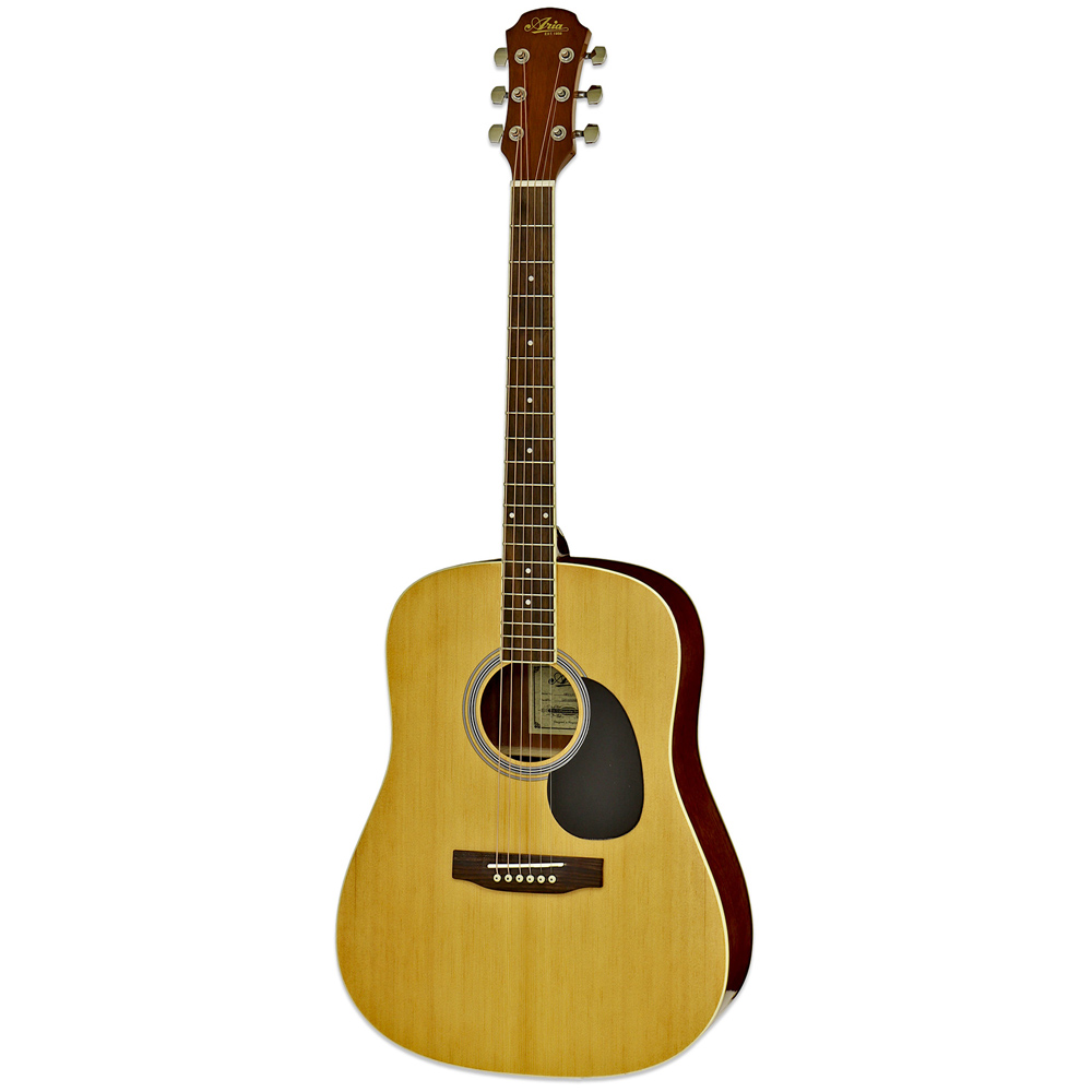 Aria AWN-15 – акустическая гитара с формой корпуса Dreadnought, верхней декой из ели, нижней декой и обечайкой из меранти, с мензурой 25,6”.