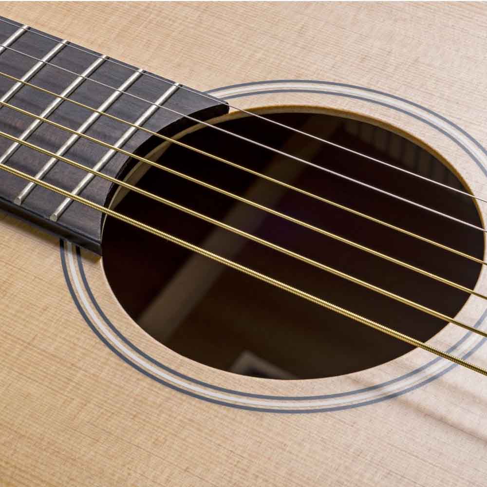На инструменте с завода устанавливаются струны D'Addario EXP11 бронза 80/20 калибром 12-53, с защитной микропленкой для увеличения срока службы и защиты от грязи.