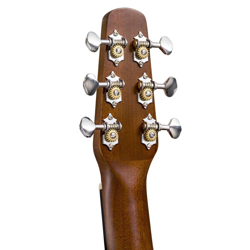 Гриф также выполнен из красного дерева, имеет 21 лад, накладка и струнодержатель в гитаре Baton Rouge L1LS/D изготовлены из дерева окангола - внешне симпатичной и надежной древесины темного цвета. Колковый механизм открытого типа с удобными металлическими ручками обеспечит точную настройку.