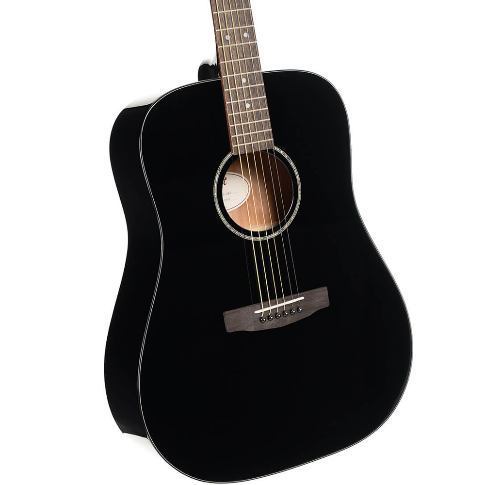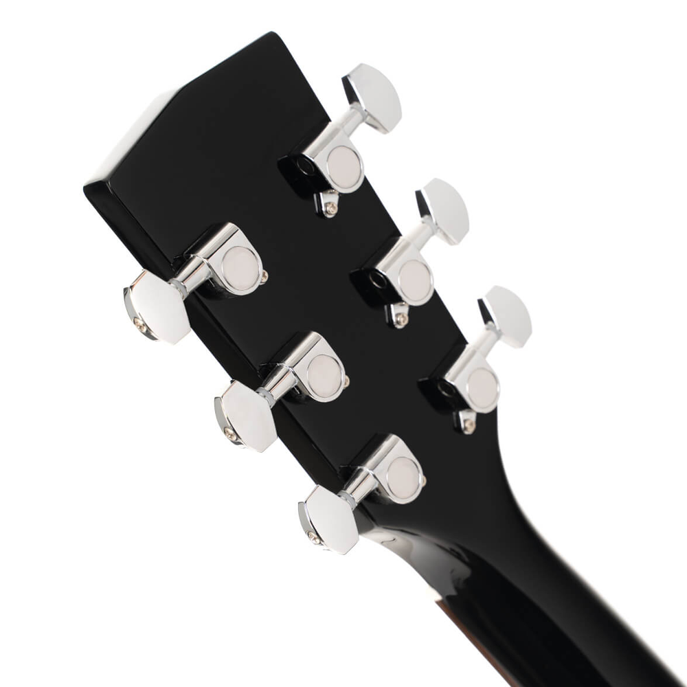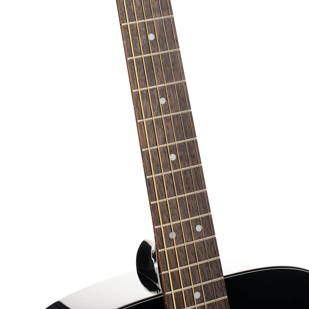 Корпус дредноут с широким корпусом и глубоким объемом создает богатый, мощный звук с отличной динамикой и проекцией, идеально подходящий для игры переборами и совместных выступлений, как аккомпанирующий инструмент.