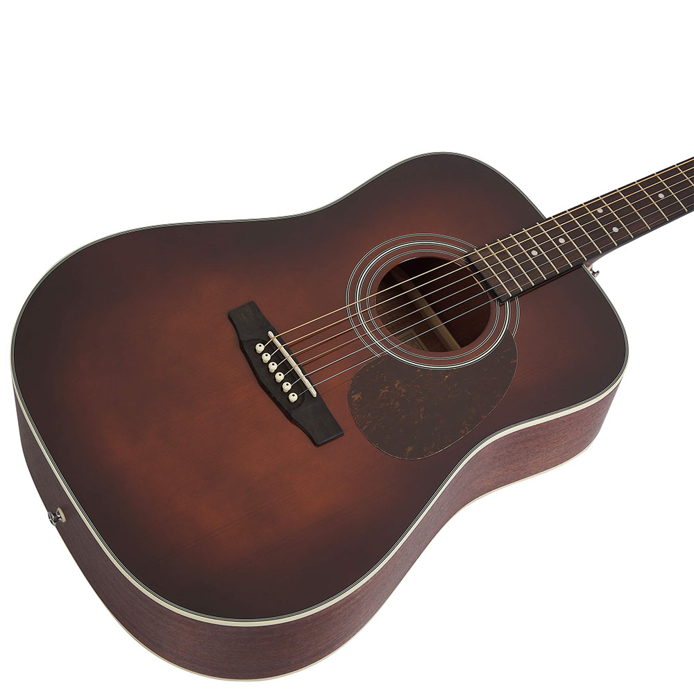 Оформить заказCort Earth 70 BR – акустическая гитара с корпусом типа дредноут, верхней декой из массива ели, нижней декой и обечайкой из красного дерева, с мензурой 25,3”.