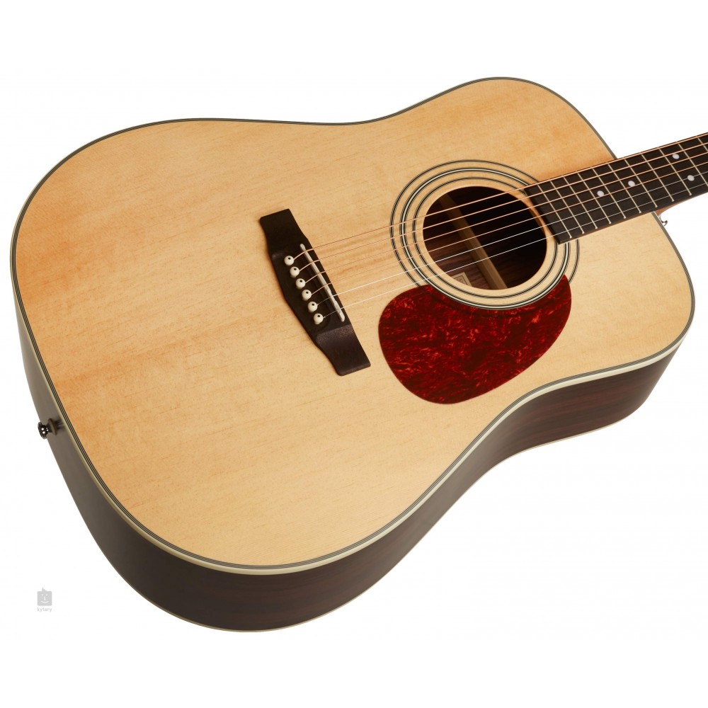 Верхняя дека инструмента изготовлена из ели. Ель хорошо резонирует и обеспечивает яркое звучание. Нижняя дека и обечайка сделана из красного дерева, она обладает теплым звучанием и отличной серединой, что позволяет получить более сбалансированное и объемное звучание. Бридж гитары имеет особую форму и обеспечивает правильный угол, под которым струны огибают порожек, что дает меньшее натяжение и улучшает сустейн. Для крепления грифа к корпусу гитары используется соединение вида ласточкин хвост, благодаря этому удается добиться наилучшего резонанса по всей площади инструмента.