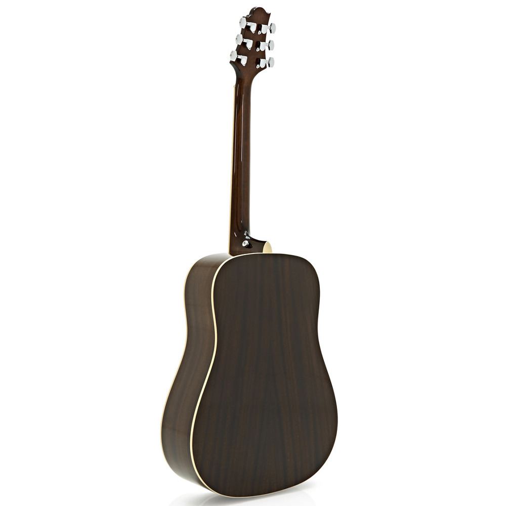 Верхняя дека гитары Greg Bennett D-2 изготовлена из ели. Ель отлично подчеркивает глубокое, богатое звучание полноразмерной вестерн гитары, обладает массивным, полным тоном.