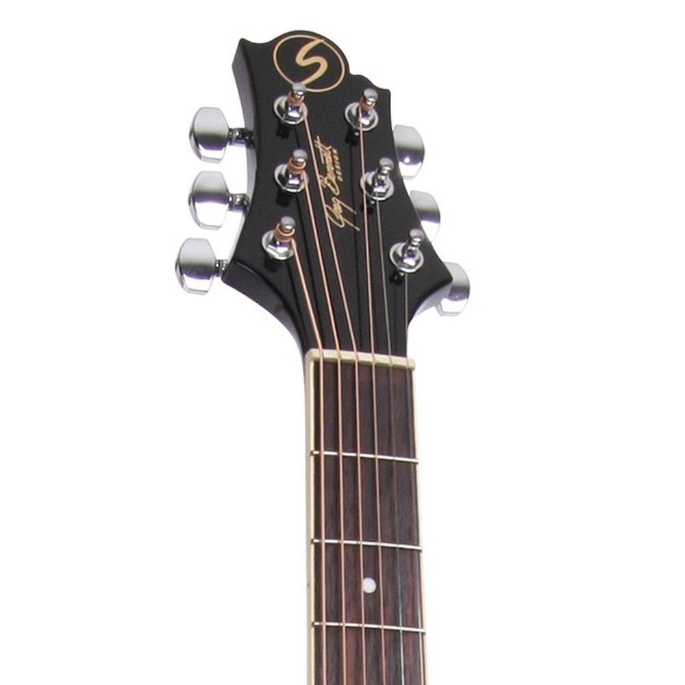 Greg Bennett GD-100S – акустическая гитара с корпусом типа дредноут, верхней декой из массива ели, нижней декой и обечайкой из красного дерева махагони, с мензурой 25,5”.