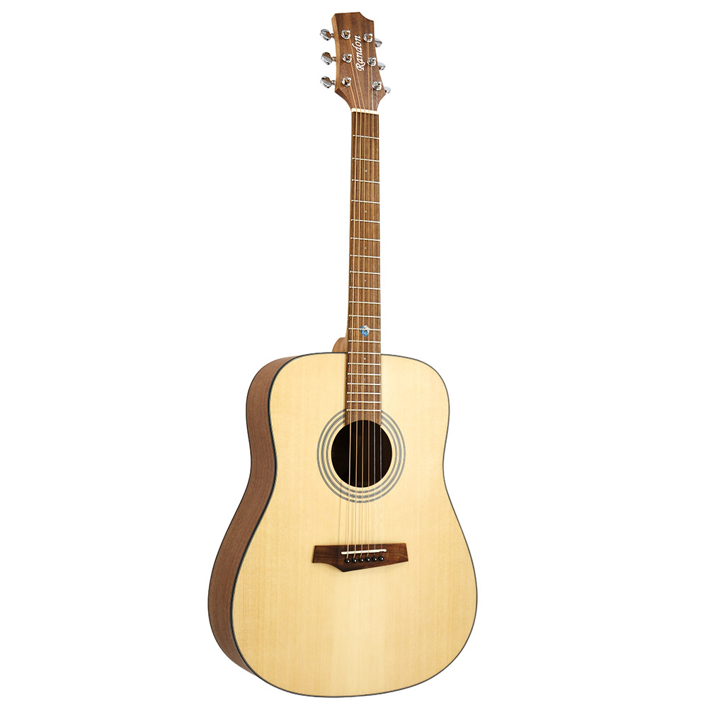 Randon RGI-01 - акустическая гитара с формой корпуса Dreadnought, верхней декой из ламинированной ели, задняя дека и обечайки выполнены из махагони, мензура 650 мм(25,60").