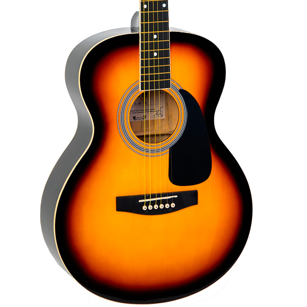 Оформить заказAris JL-40 SB – акустическая гитара с корпусом типа джамбо, верхней декой из ламинированной древесины, нижней декой и обечайкой из липы, размером 40".