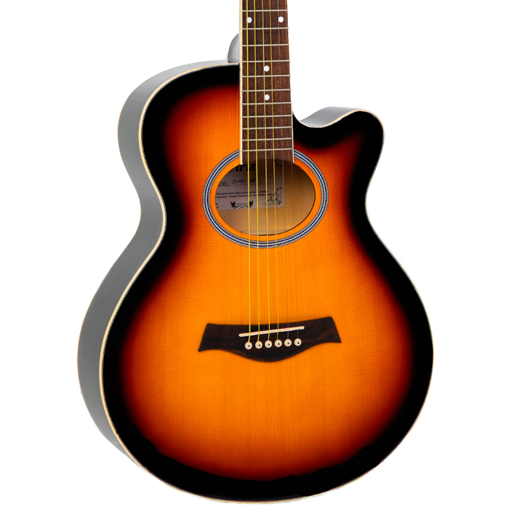 Оформить заказAris JS-40C SB – акустическая гитара с корпусом типа джамбо кэтэвей, верхней декой из ламинированной ели, нижней декой и обечайкой из липы, размером 40".