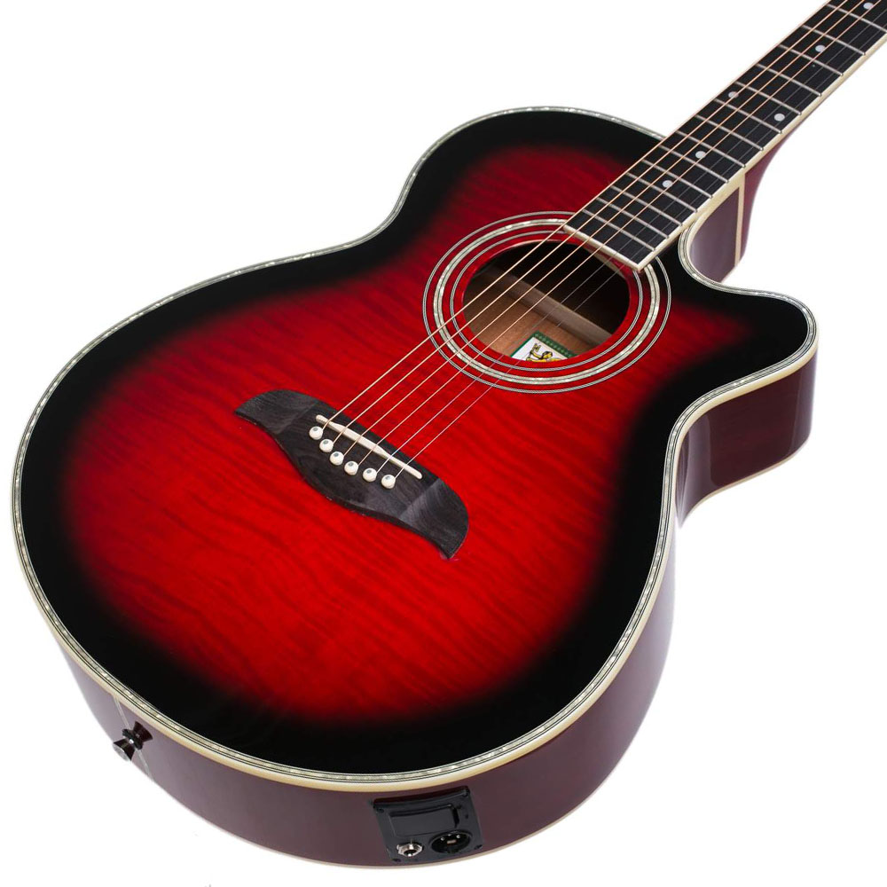Электроакустическая гитара OG10CEFTR от Oscar Schmidt изготовлена в корпусе Concert, более компактного по размерам, чем дредноут, и имеет более округлую форму.