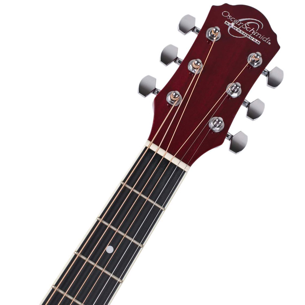 Oscar Schmidt OG10CEFTR – электроакустическая гитара с формой корпуса Concert, верхней декой из ели, нижней декой и обечайкой из махагони, оснащена четырехполосным эквалайзером.