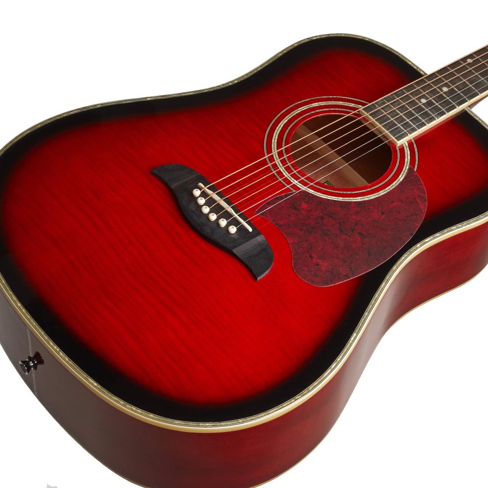 Акустическая гитара OG2FBC от Oscar Schmidt выполнена в форме вестерн дредноут, которая обеспечивает объемный звук, равномерно подчеркивает все частоты. Корпус имеет удобную форму, приятный, классический внешний вид, который достигается с помощью акриловой отделки, примененной ко всему корпусу. Для защиты глянцевого покрытия гитары от интенсивной игры на корпусе установлена накладка.