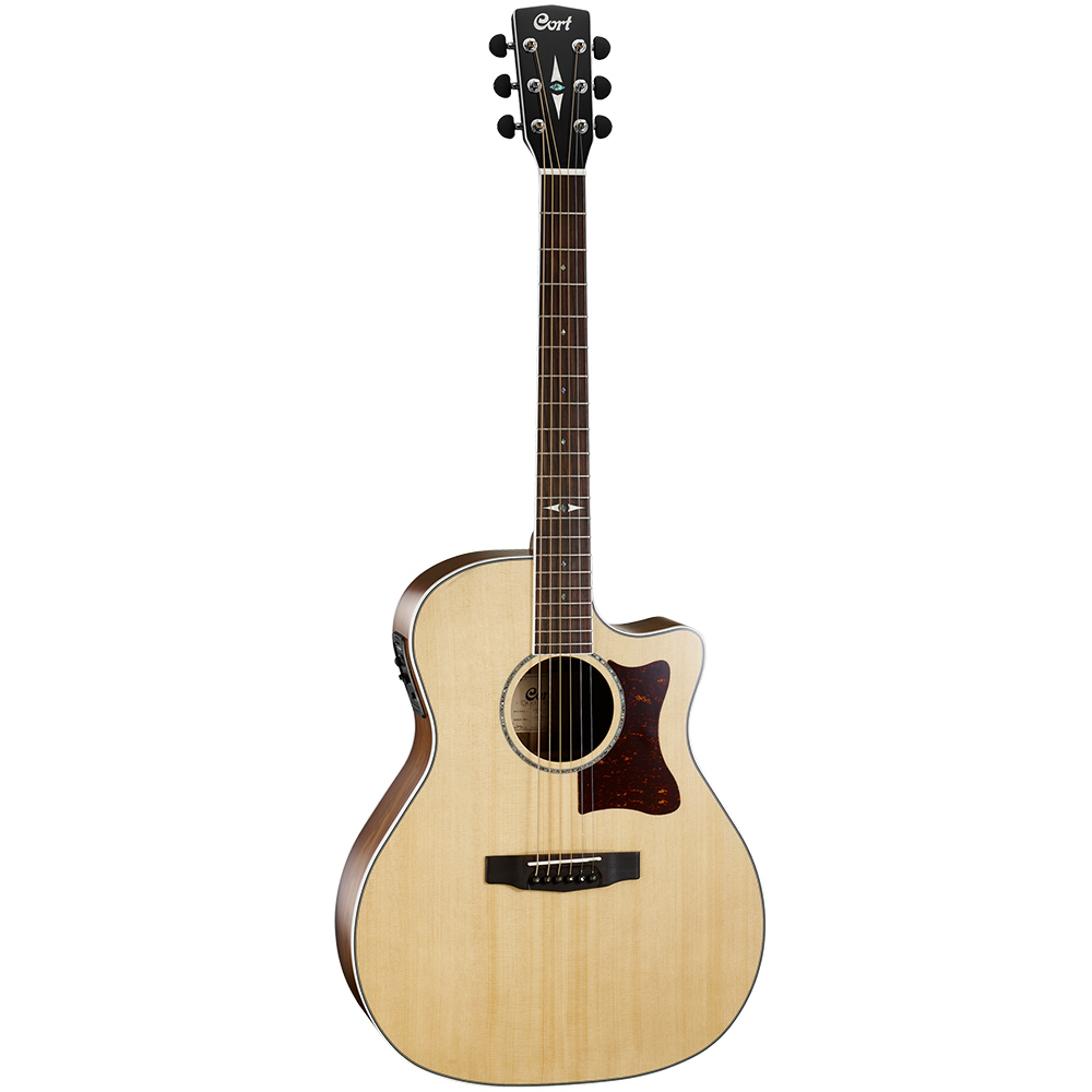 Cort GA5F-MD NAT – электроакустическая гитара с корпусом типа Grand Auditorium, верхней декой из массива ели, нижней декой и обечайкой из палисандра,