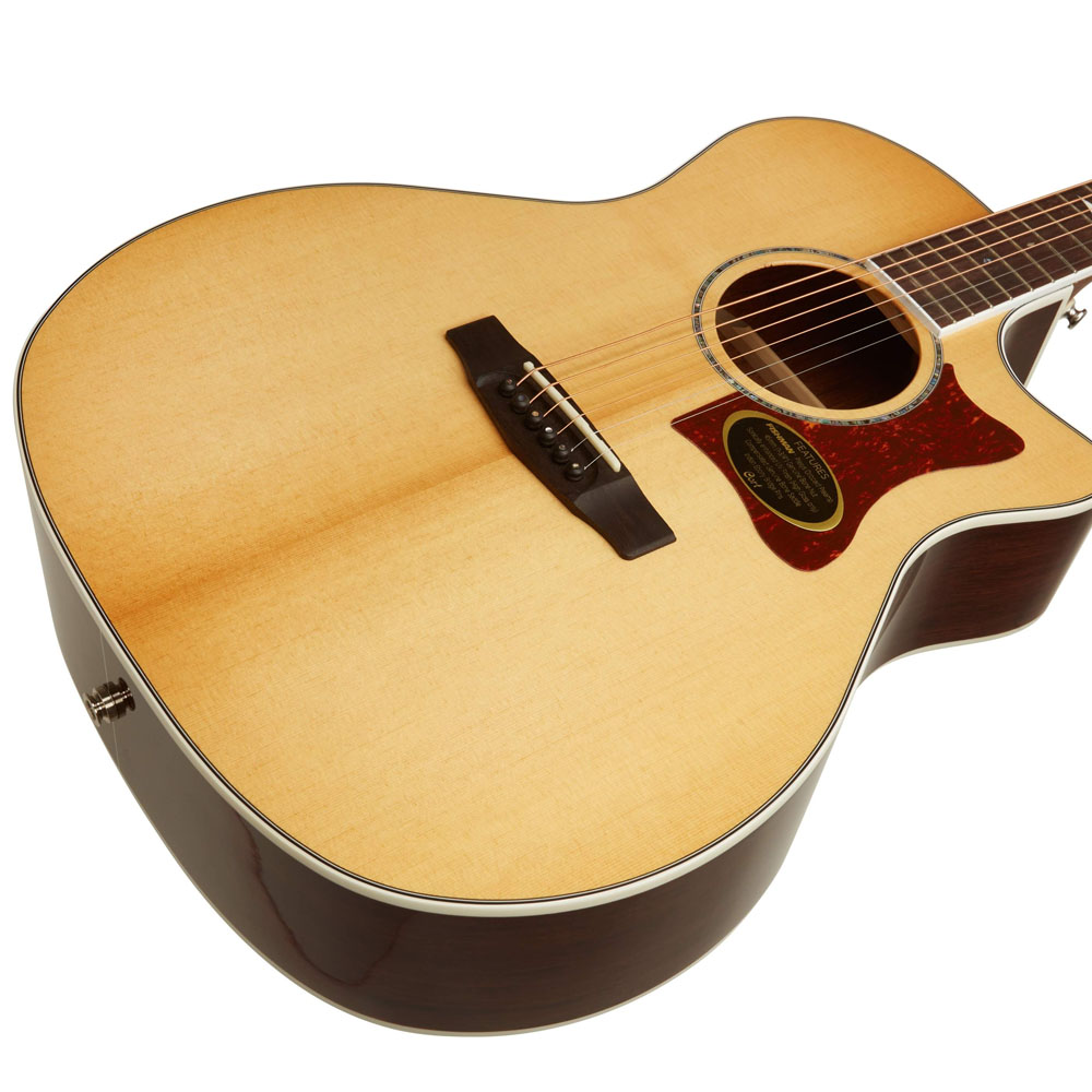 гитара GA5F-MD NAT от Cort имеет корпус форму Grand Auditorium с вырезом, которая имеет общие черты между формами дредноута и концерта.