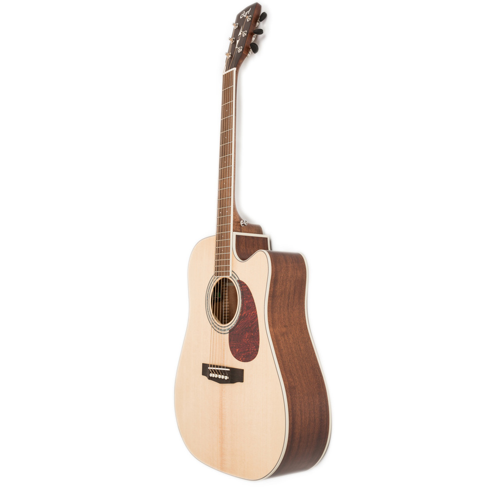 Электроакустическая гитара MR710F NS от Cort имеет корпус форму дредноут с вырезом cut-away, который позволяет гитаристу достигать последних ладов во время выступления.