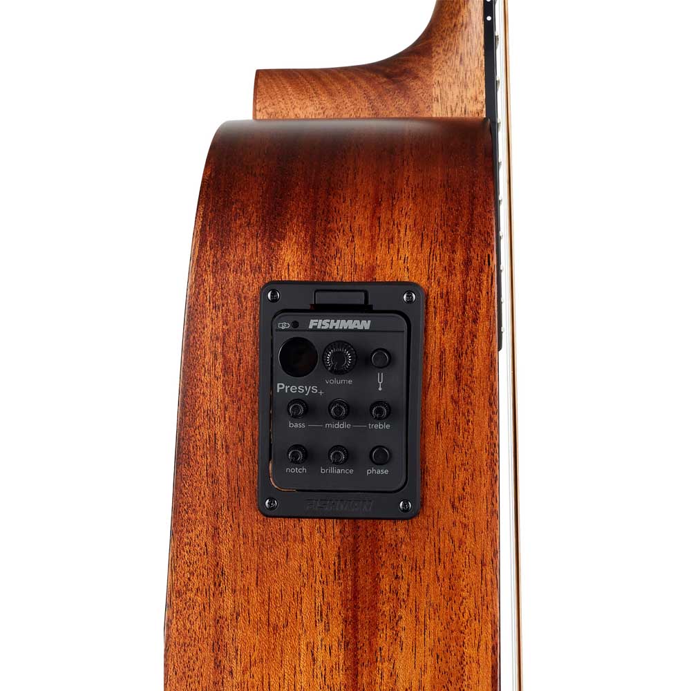Гитара оснащена пьезодатчиком и электроникой Fishman Fishman Presys+, позволяющей настраивать громкость, низкие, средние, высокие частоты, яркость звучания и переключение фазы для устранения обратной связи.