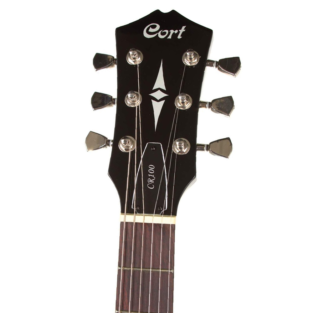 Оформить заказCort CR100 BK – электрогитара с корпусом формы Les Paul, верхней и нижней декой из красного дерева махагони, электроникой типа H-H, с мензурой 24,75”.