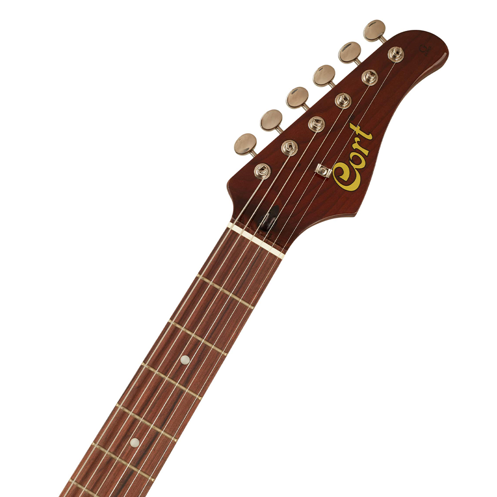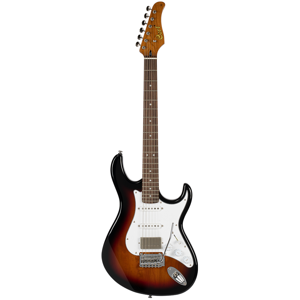 Cort G260CS 3TS – электрогитара с корпусом формы stratocaster, верхней и нижней декой из ольхи, электроникой типа H-S-S, с мензурой 25,5”.