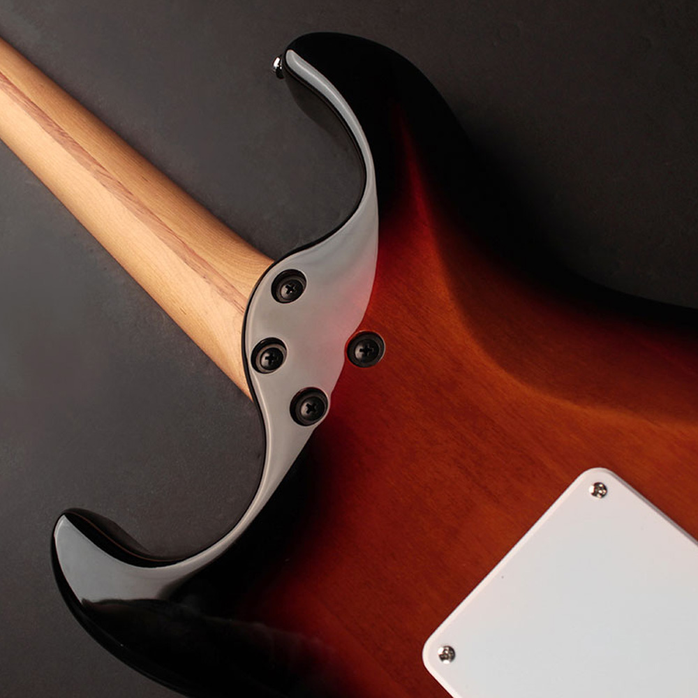 Кленовый гриф имеет С-образный профиль, при производстве подвергается обработке в условиях высокой температуры. За счет этого древесина стабилизируется и приобретает более винтажный внешний вид. Крепление грифа к корпусу происходит на четырех болтах.
