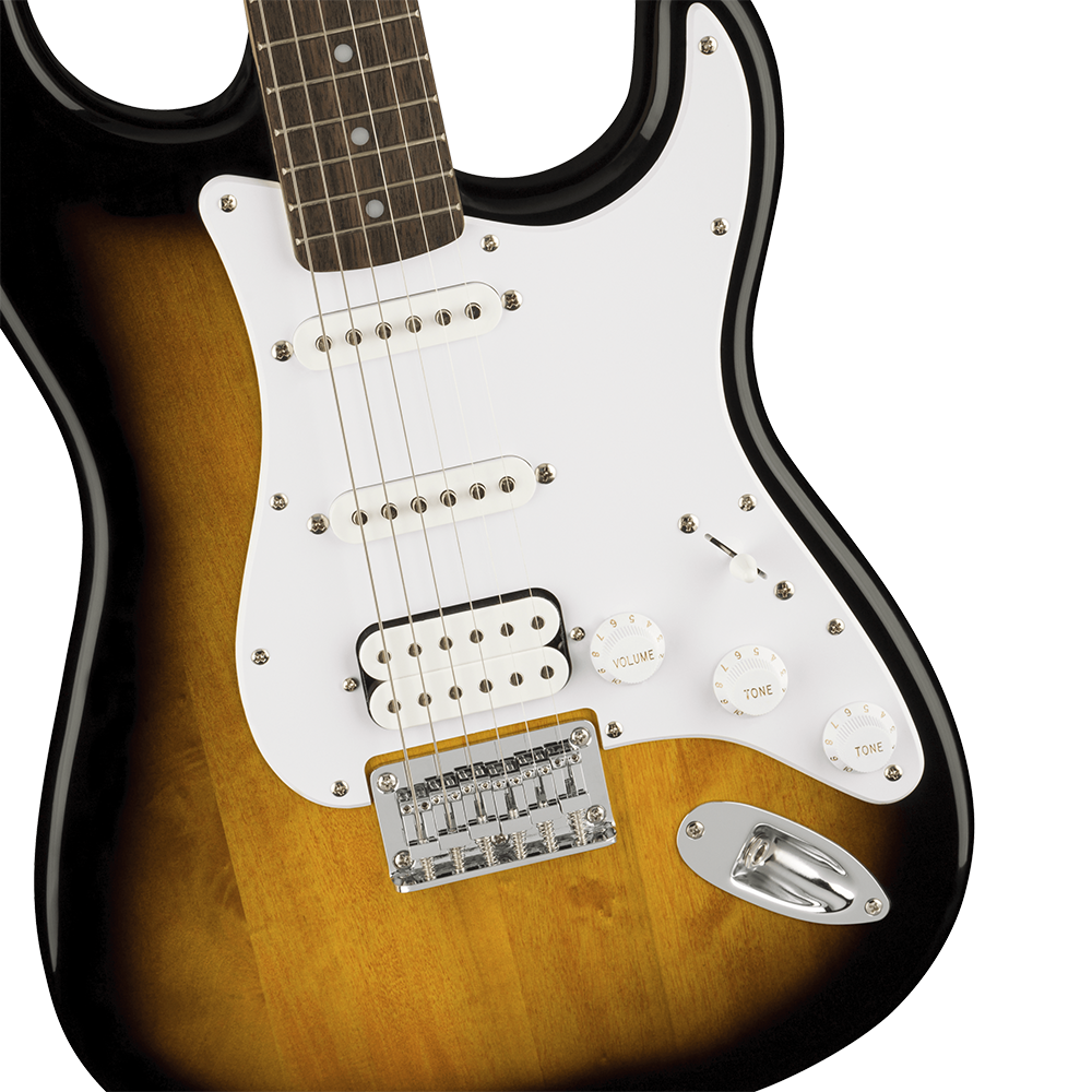 Fender Squier Bullet Stratocaster HT HSS (Brown Sunburst) – электрогитара с формой корпуса Stratocaster, корпусом из липы, кленовым грифом, конфигурацией звукоснимателей HSS.