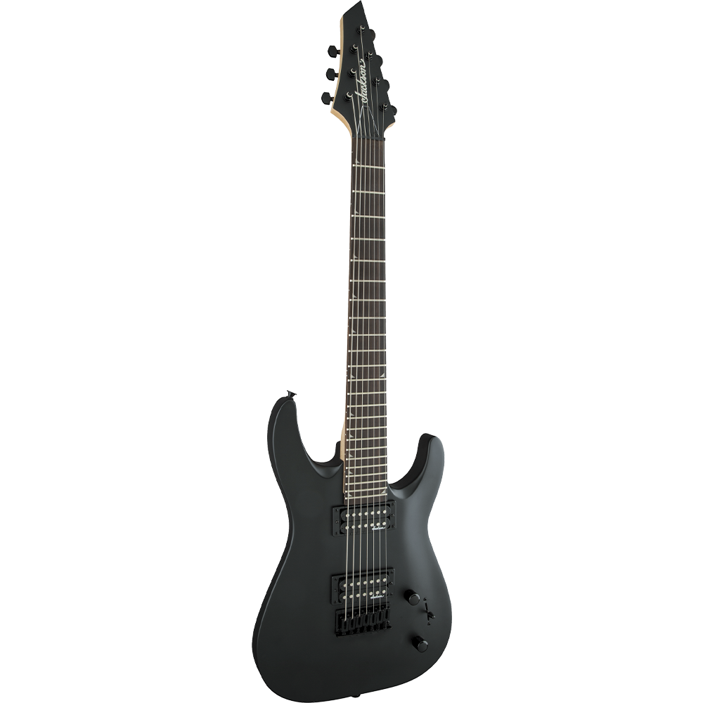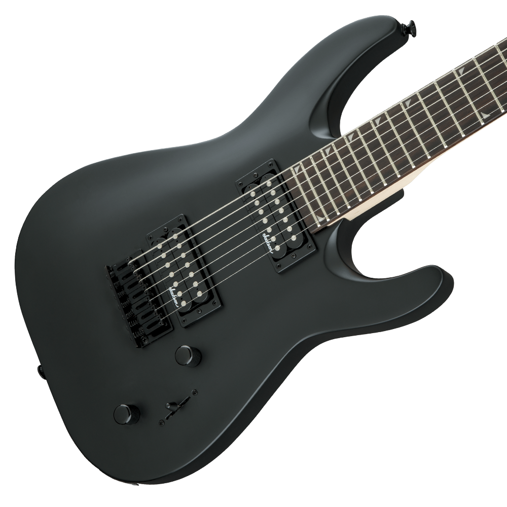 Jackson JS22-7 Dinky (Satin Black) обладает лёгким и резонансным корпусом из тополя, кленовым грифом на болтах, и креплением к корпусу типа «scarf» для снижения усталости при игре.
