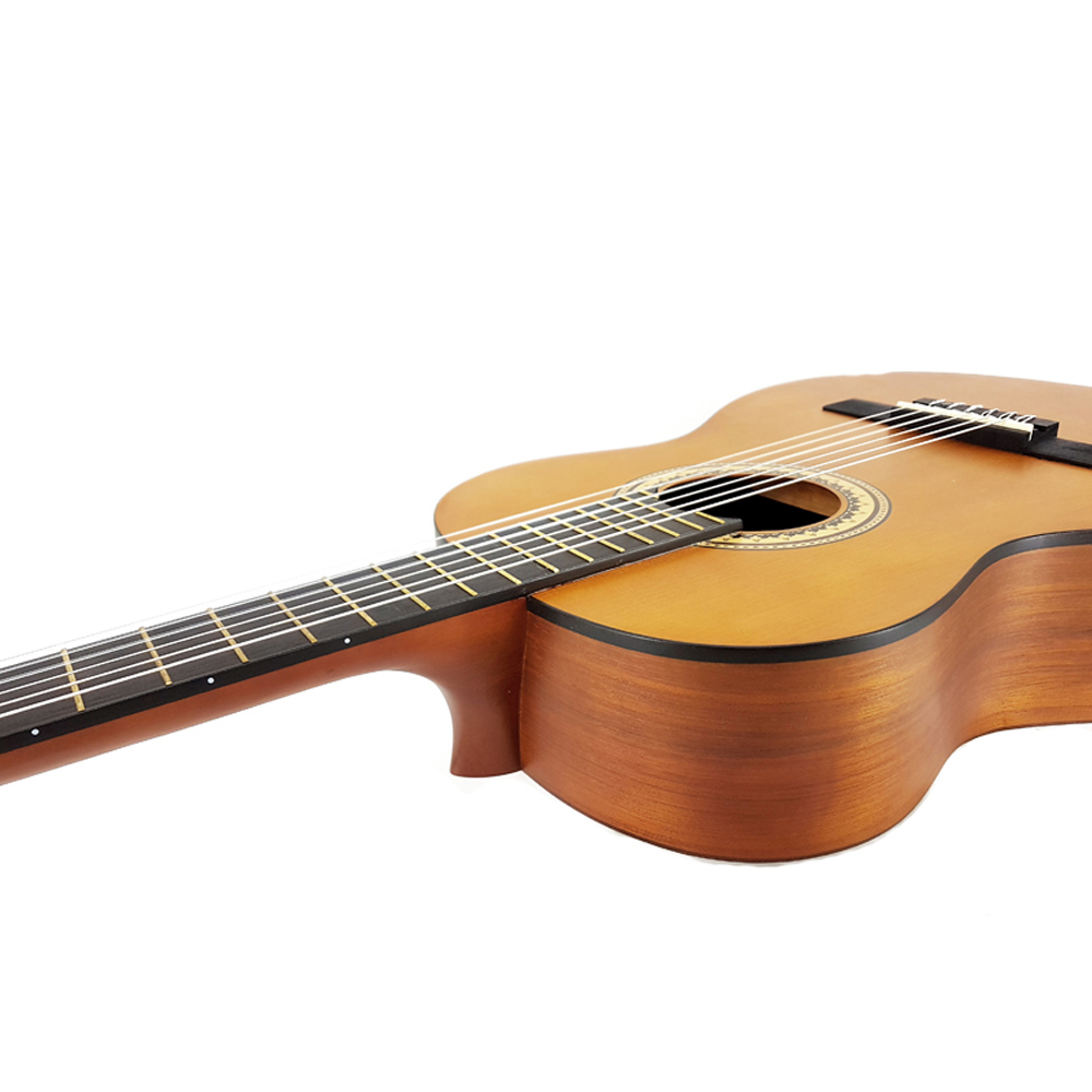 Верхняя и нижняя деки гитары изготовлены из липы, благодаря чему инструмент имеет малый вес, позволяющий долго заниматься без чувства усталости.