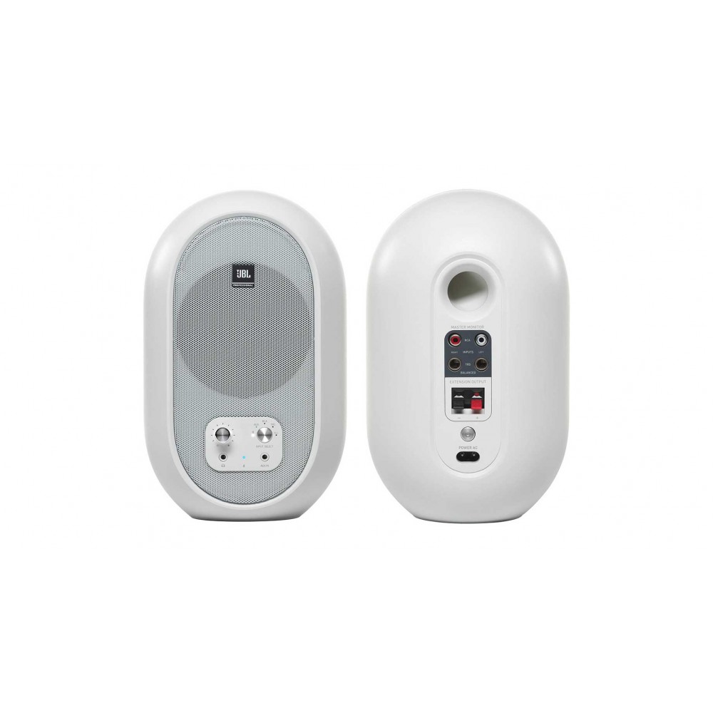 JBL 1 Series 104-BT White Matte – пара активных студийных мониторов с 4,5-дюймовым вуфером, 0,75-дюймовым твитером, встроенным усилителем мощности 60 Вт, выходом на наушники, Bluetooth-подключением, частотным диапазоном 60 Гц – 20 кГц, белого цвета.
