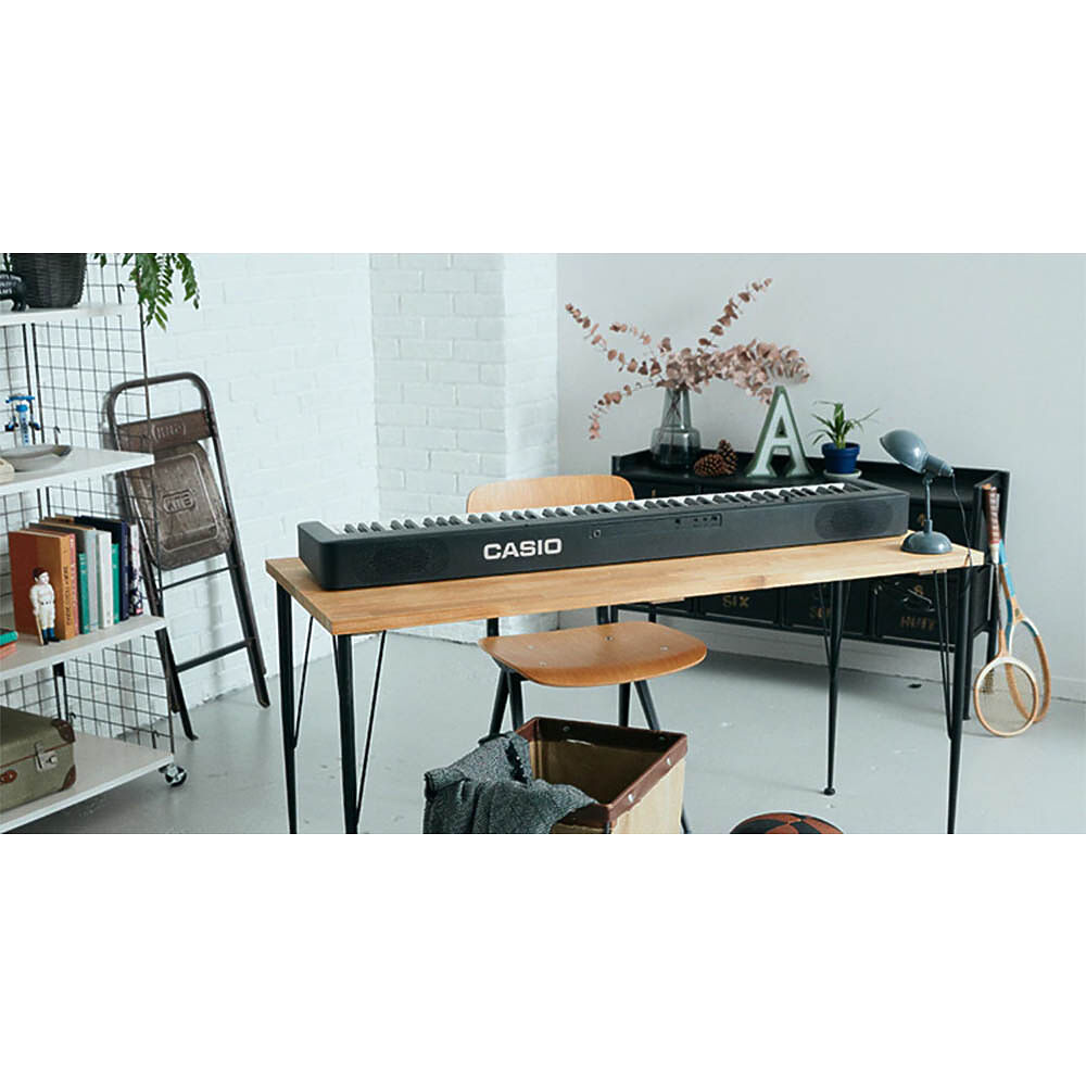 88 полноразмерных динамических клавиш обеспечивают реалистичное ощущение игры. Поддерживаются 3 уровня чувствительности и возможность её отключения. Встроено 2 демонстрационные композиции для практики.