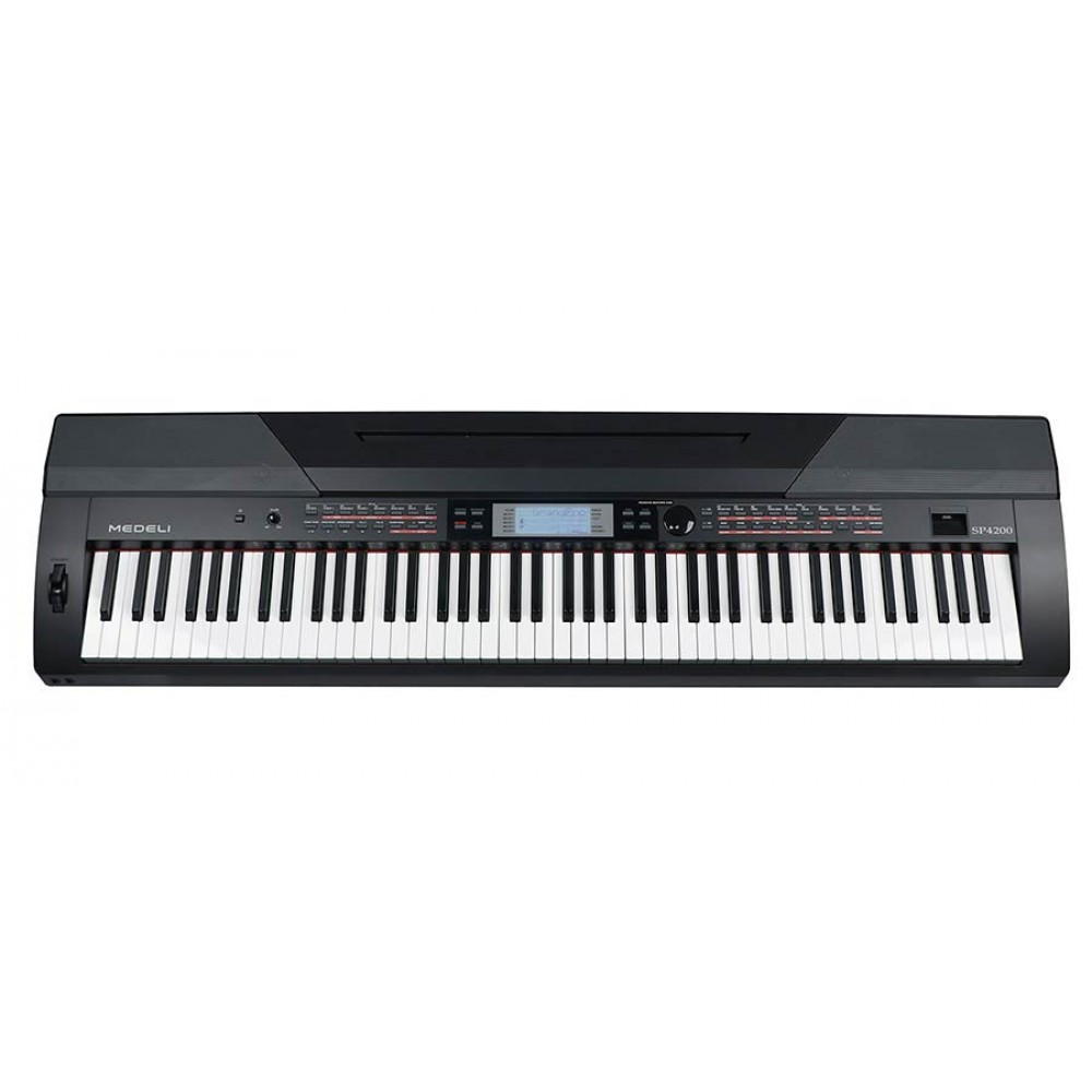 Оформить заказMedeli SP4200 B — сценическое цифровое пианино с аккомпанементом, созданное для репетиций, обучения и живых выступлений. Инструмент оснащён 88 полноразмерными клавишами с молоточковой механикой GAS-II, которая точно передаёт динамику игры и приближает ощущения к акустическому инструменту. Мощная акустическая система (2 × 20 Вт), широкий выбор звуков и стилей, а также удобные функции делают модель универсальной как для дома, так и для сцены.